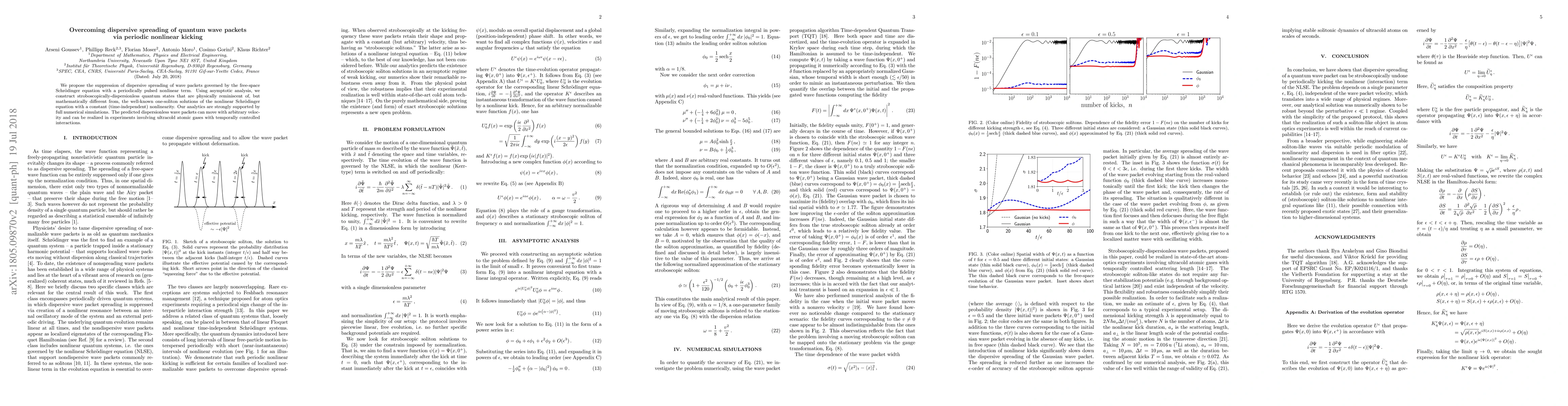 This paper proposes a method to suppress dispersive spreading of quantum wave packets by incorporating periodic nonlinear kicks, creating stroboscopically-dispersionless states distinct from soliton solutions. Numerical simulations support the theoretical findings, suggesting these states can be realized in ultracold atomic gas experiments.