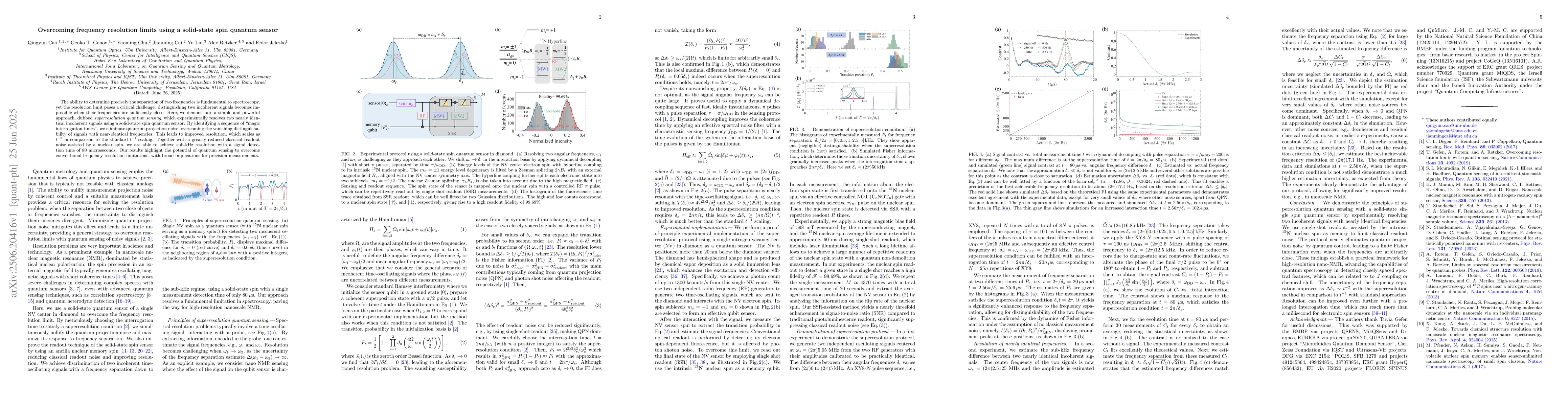 The research introduces 'superresolution quantum sensing' to overcome frequency resolution limits in spectroscopy. Using a solid-state spin quantum sensor, it identifies 'magic interrogation times' to eliminate quantum projection noise, achieving sub-kHz resolution in 80 microseconds, outperforming classical methods.