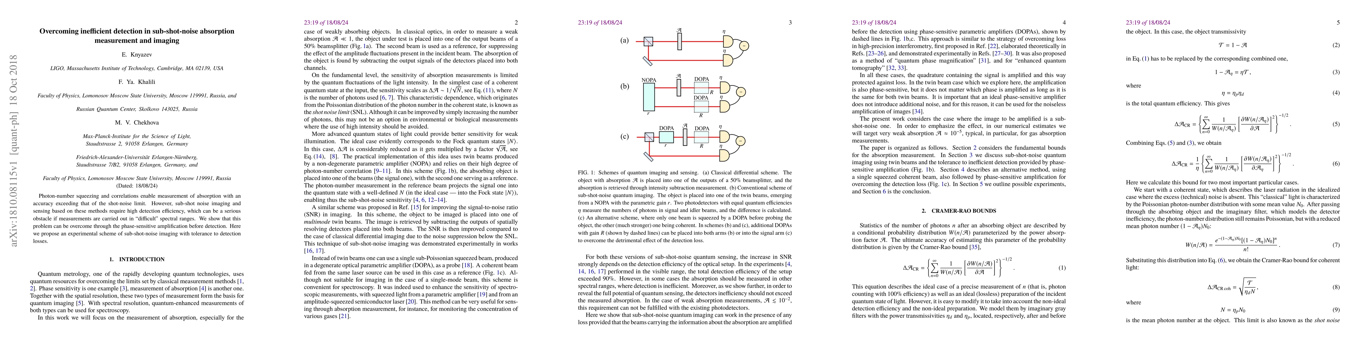 This research proposes an experimental scheme for sub-shot-noise imaging that leverages phase-sensitive amplification to overcome detection inefficiency, particularly in challenging spectral ranges, enabling more accurate absorption measurements. The approach maintains high accuracy despite potential detection losses.