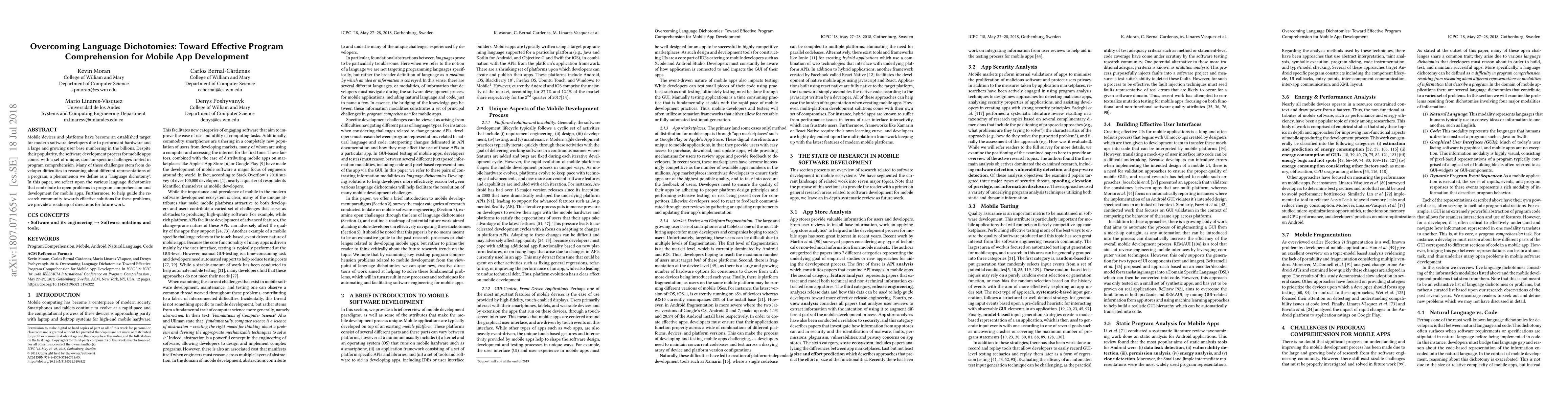 This paper explores the unique challenges in mobile app development due to "language dichotomies," which hinder effective program comprehension. It outlines various dichotomies and proposes a roadmap for future research to address these comprehension issues.