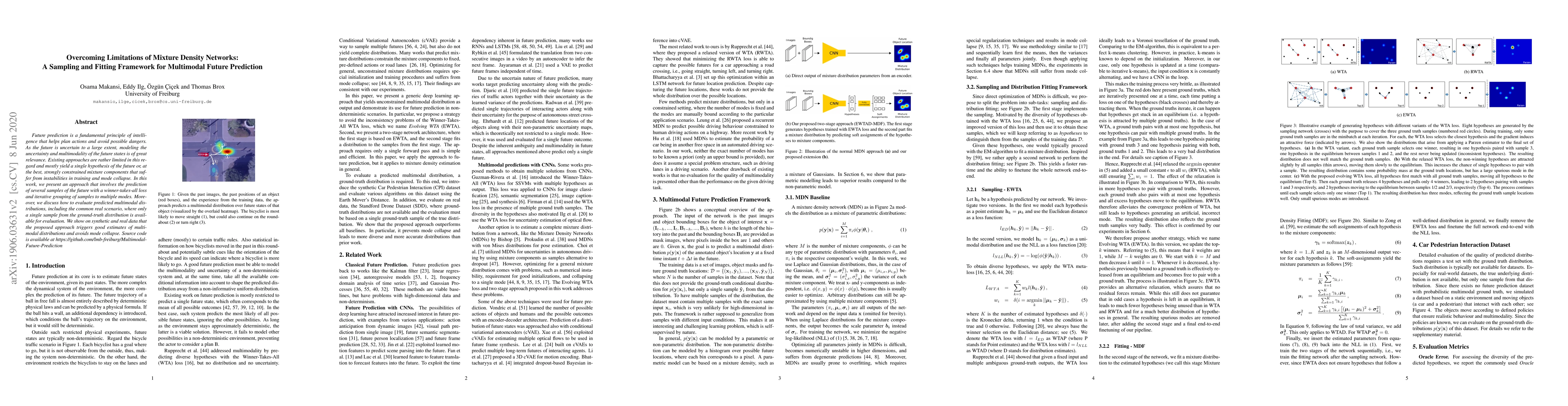 Future prediction is a fundamental principle of intelligence that helps plan actions and avoid possible dangers. As the future is uncertain to a large extent, modeling the uncertainty and multimodality of the future states is of great relevance. Existing approaches are rather limited in this regard and mostly yield a single hypothesis of the future or, at the best, strongly constrained mixture components that suffer from instabilities in training and mode collapse. In this work, we present an approach that involves the prediction of several samples of the future with a winner-takes-all loss and iterative grouping of samples to multiple modes. Moreover, we discuss how to evaluate predicted multimodal distributions, including the common real scenario, where only a single sample from the ground-truth distribution is available for evaluation. We show on synthetic and real data that the proposed approach triggers good estimates of multimodal distributions and avoids mode collapse. Source code is available at $\href{https://github.com/lmb-freiburg/Multimodal-Future-Prediction}{\text{this https URL.}}$