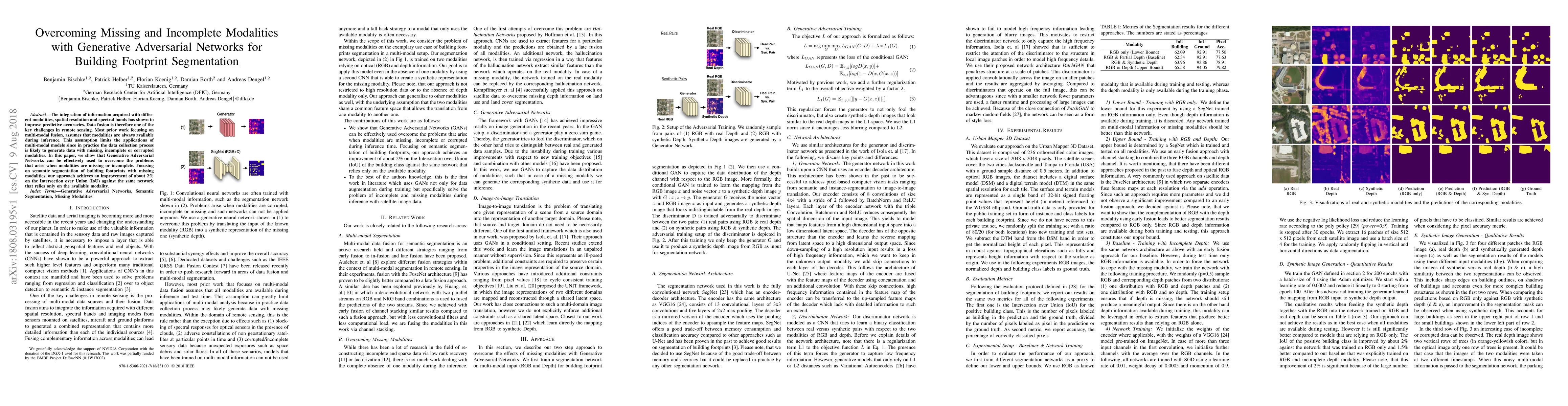 This paper explores the use of Generative Adversarial Networks (GANs) to address the challenge of missing and incomplete data modalities in remote sensing applications, specifically for building footprint segmentation. The proposed method improves Intersection over Union (IoU) by 2% compared to networks that only use available modalities.