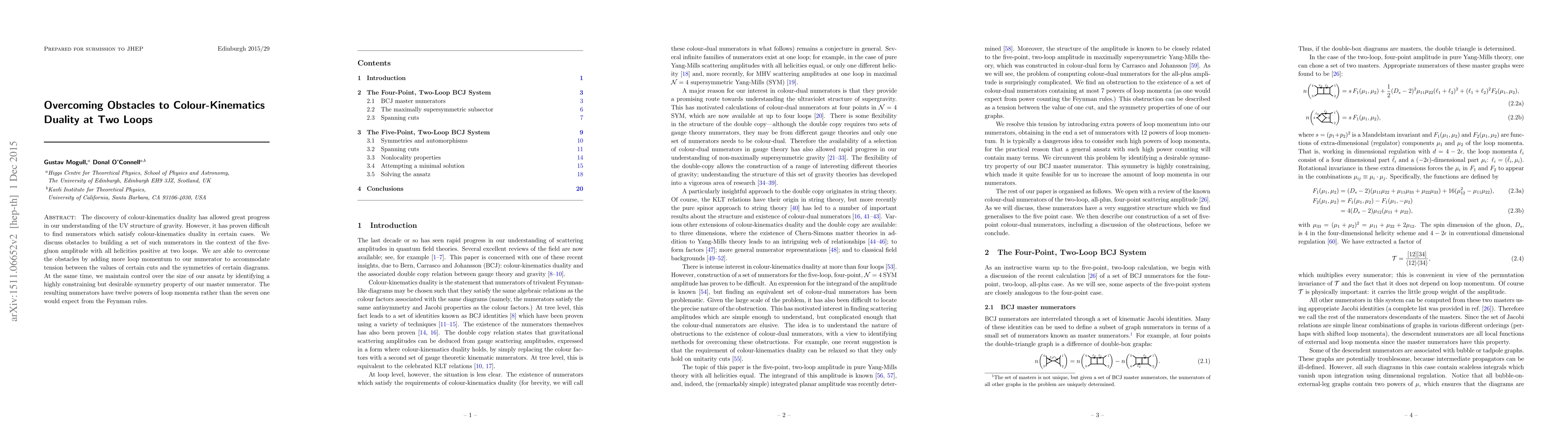 The discovery of colour-kinematics duality has allowed great progress in our understanding of the UV structure of gravity. However, it has proven difficult to find numerators which satisfy colour-kinematics duality in certain cases. We discuss obstacles to building a set of such numerators in the context of the five-gluon amplitude with all helicities positive at two loops. We are able to overcome the obstacles by adding more loop momentum to our numerator to accommodate tension between the values of certain cuts and the symmetries of certain diagrams. At the same time, we maintain control over the size of our ansatz by identifying a highly constraining but desirable symmetry property of our master numerator. The resulting numerators have twelve powers of loop momenta rather than the seven one would expect from the Feynman rules.