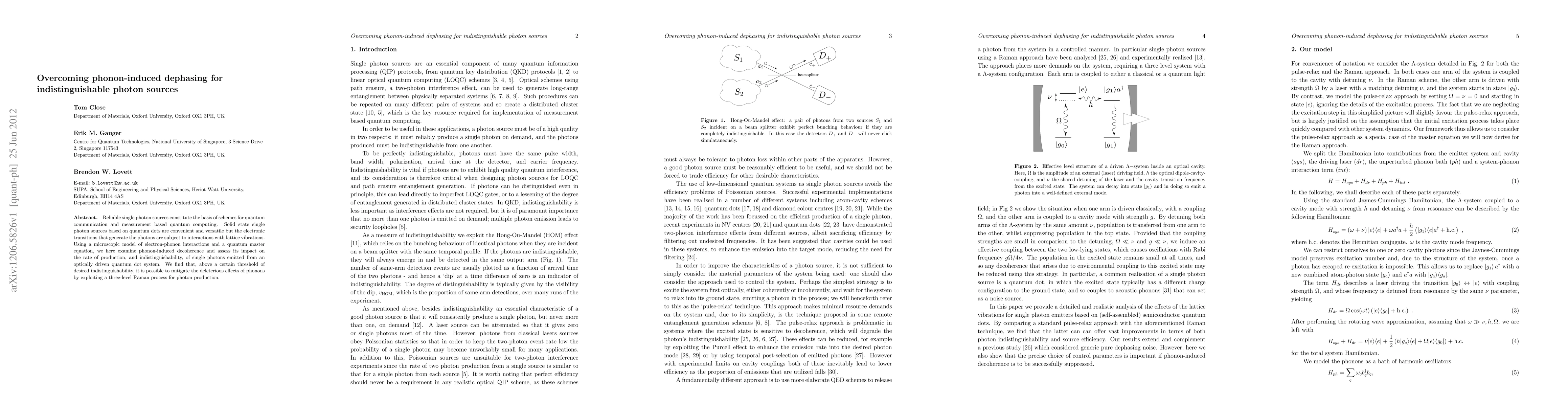 This paper investigates phonon-induced decoherence in solid-state single photon sources based on quantum dots, finding that phonon interactions can degrade photon indistinguishability. It proposes a three-level Raman process to mitigate these effects and enhance the quality of photon sources for quantum communication and computing.