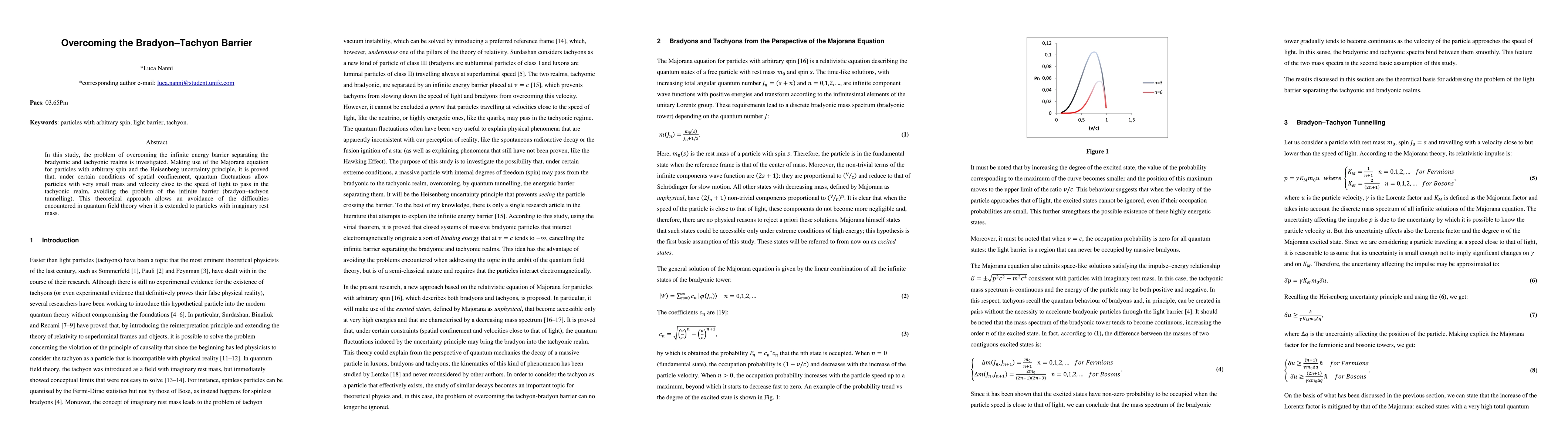 In this study, the problem of overcoming the infinite energy barrier separating the bradyonic and tachyonic realms is investigated. Making use of the Majorana equation for particles with arbitrary spin and the Heisenberg uncertainty principle, it is proved that, under certain conditions of spatial confinement, quantum fluctuations allow particles with very small mass and velocity close to the speed of light to pass in the tachyonic realm, avoiding the problem of the infinite barrier. This theoretical approach allows an avoidance of the difficulties encountered in quantum field theory when it is extended to particles with imaginary rest mass.