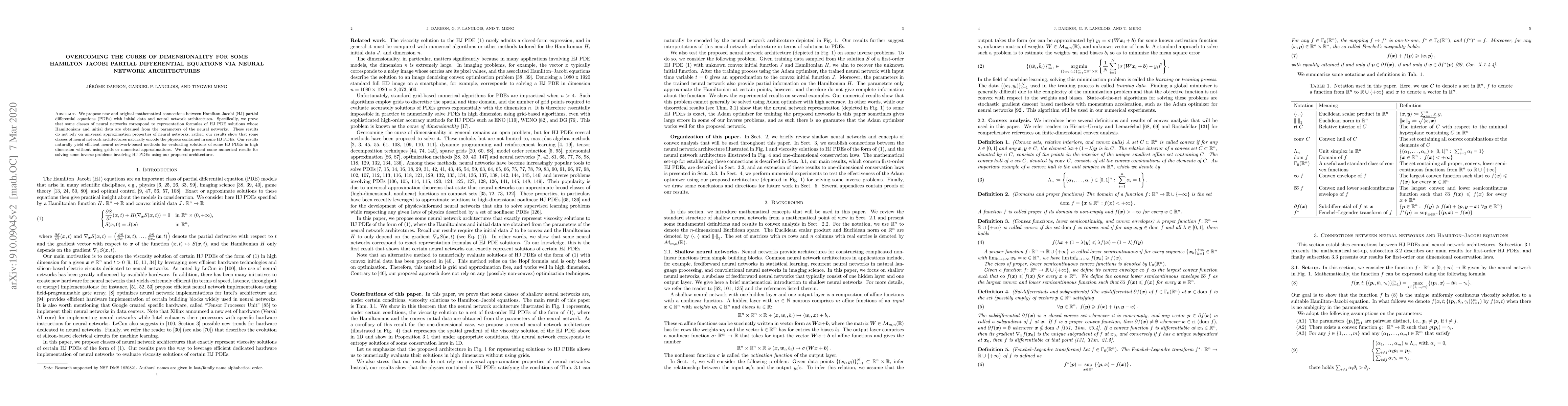 This paper establishes mathematical links between Hamilton-Jacobi PDEs and specific neural network architectures, demonstrating that certain neural networks can naturally encode the physics of these PDEs. This leads to efficient, grid-free methods for evaluating high-dimensional PDE solutions.