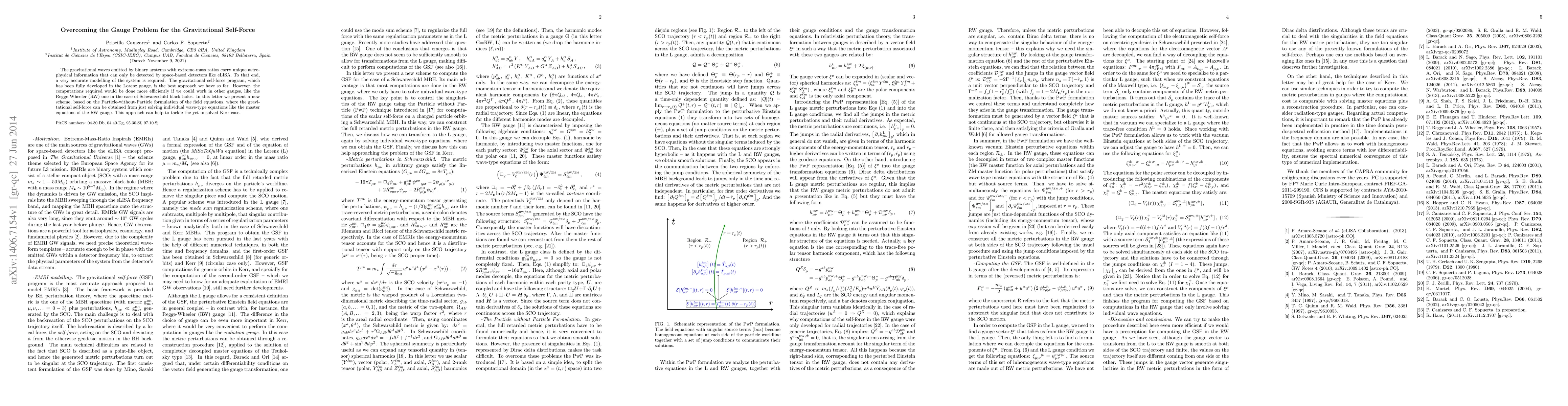 The gravitational waves emitted by binary systems with extreme-mass ratios carry unique astrophysical information that can only be detected by space-based detectors like eLISA. To that end, a very accurate modelling of the system is required. The gravitational self-force program, which has been fully developed in the Lorenz gauge, is the best approach we have so far. However, the computations required would be done more efficiently if we could work in other gauges, like the Regge-Wheeler (RW) one in the case of Schwarzschild black holes. In this letter we present a new scheme, based on the Particle-without-Particle formulation of the field equations, where the gravitational self-force can be obtained from just solving individual wave-type equations like the master equations of the RW gauge. This approach can help to tackle the yet unsolved Kerr case.