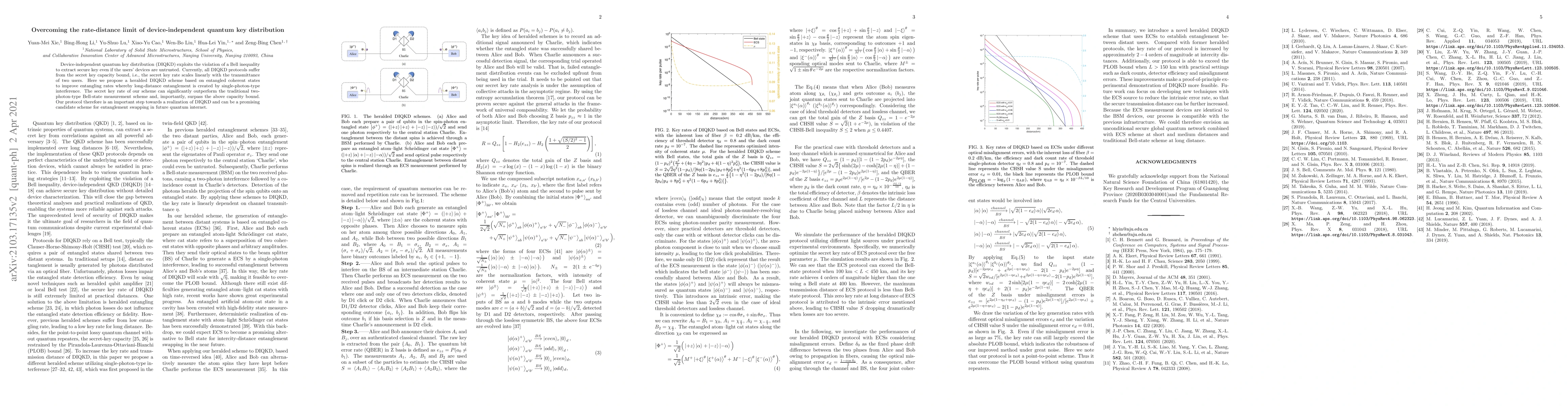 This paper proposes a novel heralded device-independent quantum key distribution (DIQKD) scheme using entangled coherent states to enhance entangling rates, overcoming the traditional linear secret key rate limit and showing potential for long-distance quantum communication. The new protocol promises higher key rates and is a promising candidate for future quantum internet applications.
