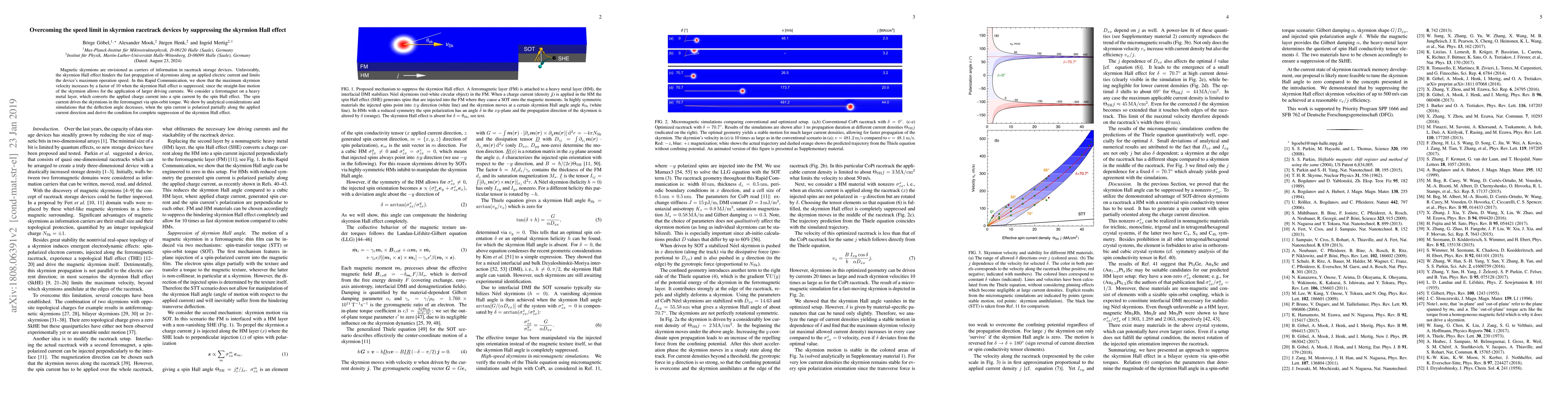 This paper demonstrates a tenfold increase in skyrmion velocity in racetrack storage devices by suppressing the skyrmion Hall effect, allowing for higher driving currents. The suppression is achieved by partially aligning the spin current along the direction of the applied charge current, thereby reducing the deflection angle and enabling faster skyrmion propagation.