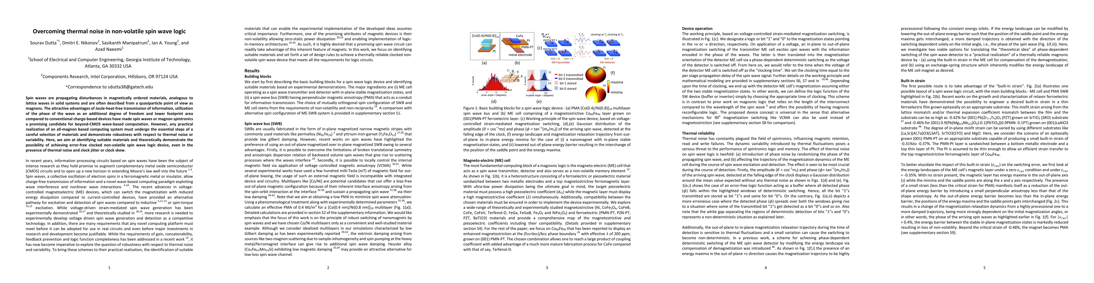Researchers explore spin wave logic for computing, overcoming thermal noise to achieve error-free clocked non-volatile devices.