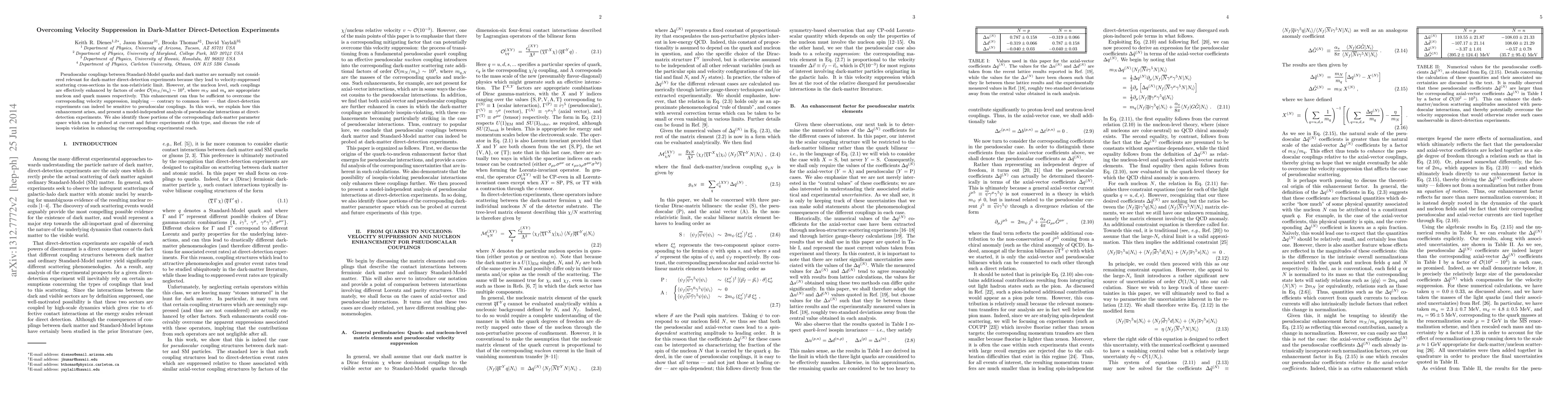 This paper explores how pseudoscalar couplings between dark matter and Standard-Model quarks, typically considered velocity-suppressed, can be effectively enhanced by factors of order $10^3$ at the nucleon level, making direct-detection experiments sensitive to these interactions. It presents a model-independent analysis and identifies potential dark-matter parameter regions that current and future experiments can probe.