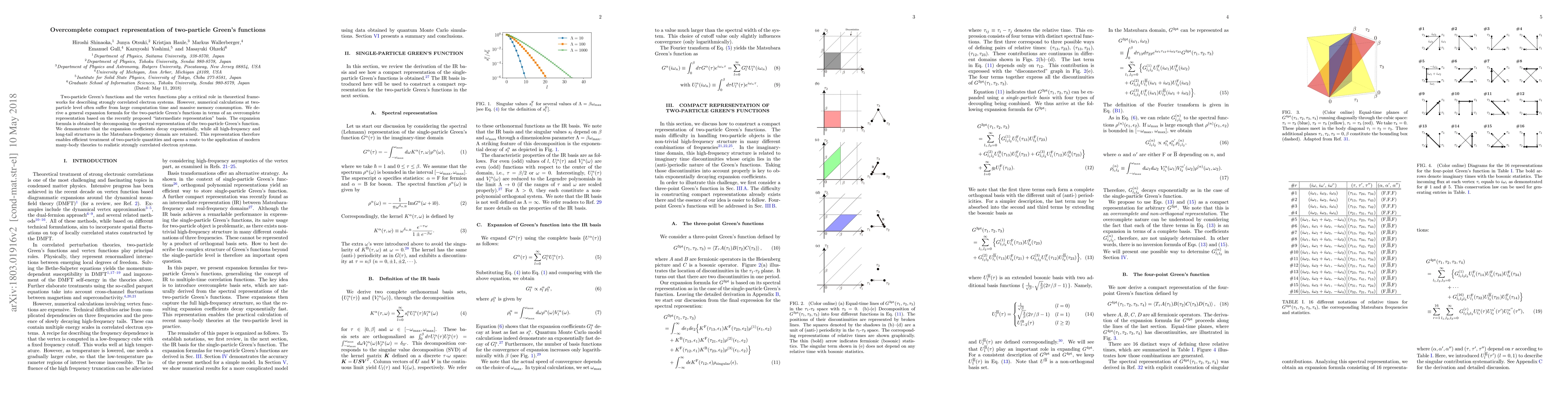 This paper proposes an efficient overcomplete representation for two-particle Green's functions, derived from an "intermediate representation" basis, which significantly reduces computational time and memory usage. The new expansion formula retains high-frequency structures, enabling practical application of many-body theories to strongly correlated electron systems.