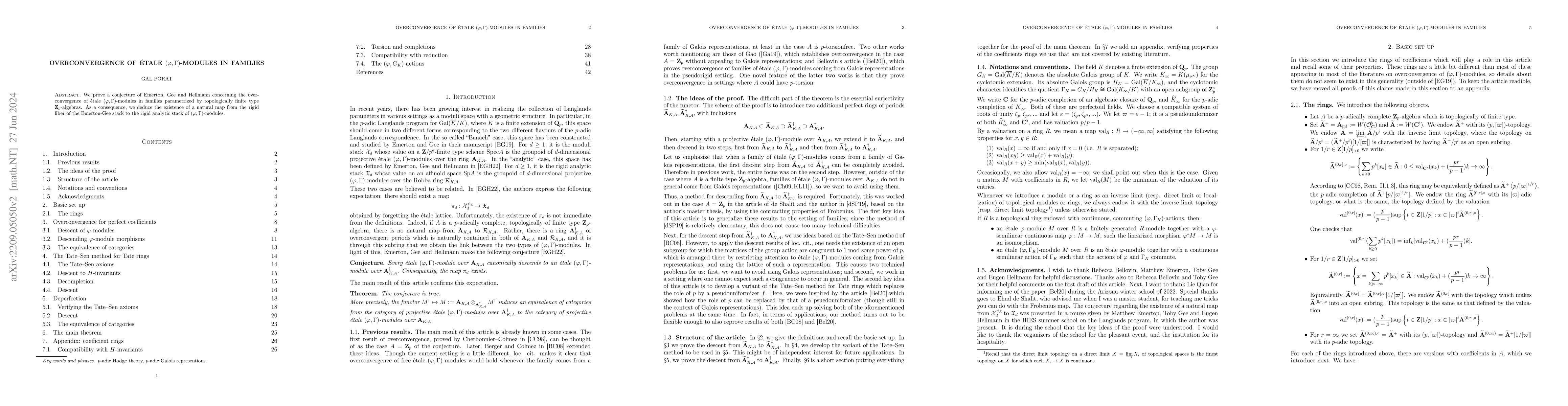Summary: This paper confirms a conjecture regarding the overconvergence of \'etale $(\varphi,\Gamma)$-modules in families over topologically finite type $\mathbb{Z}_{p}$-algebras, establishing a natural map from the Emerton-Gee stack's rigid fiber to the rigid analytic stack of $(\varphi,\Gamma)$-modules.