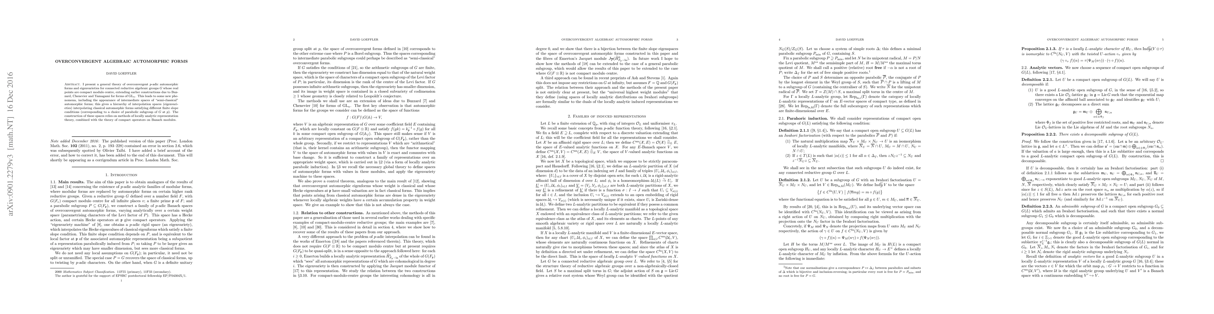 This paper develops a theory of overconvergent p-adic automorphic forms and eigenvarieties for reductive algebraic groups, extending prior work for GL(n). It introduces "semi-classical" automorphic forms and a hierarchy of interpolation spaces, utilizing locally analytic representation theory and compact operator theory.