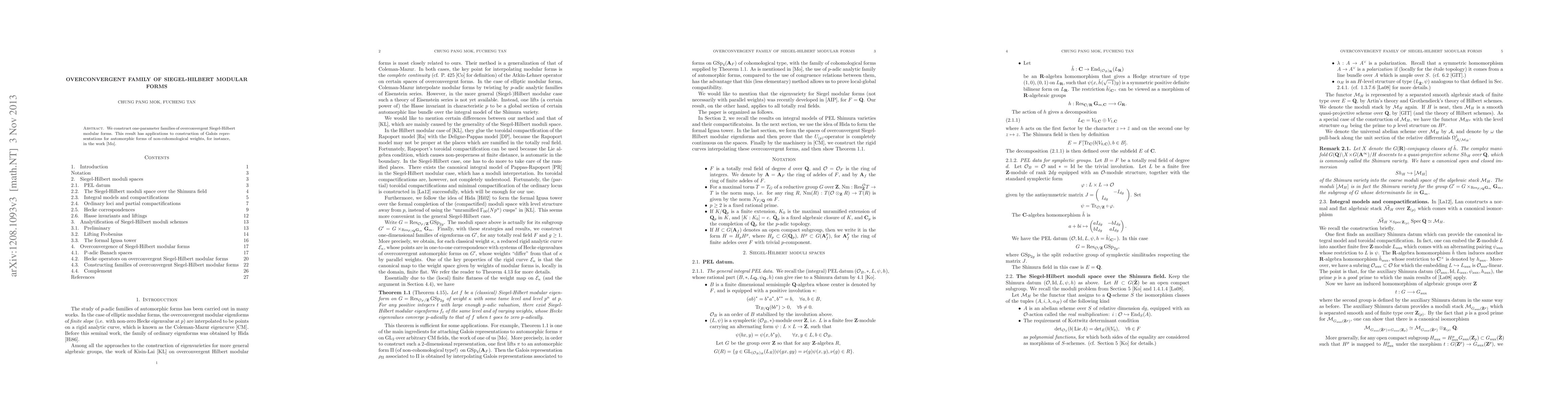 Summary: The paper constructs families of overconvergent Siegel-Hilbert modular forms, establishing a rigid analytic disc around classical eigenforms where infinite families of classical points converge with varying weights.