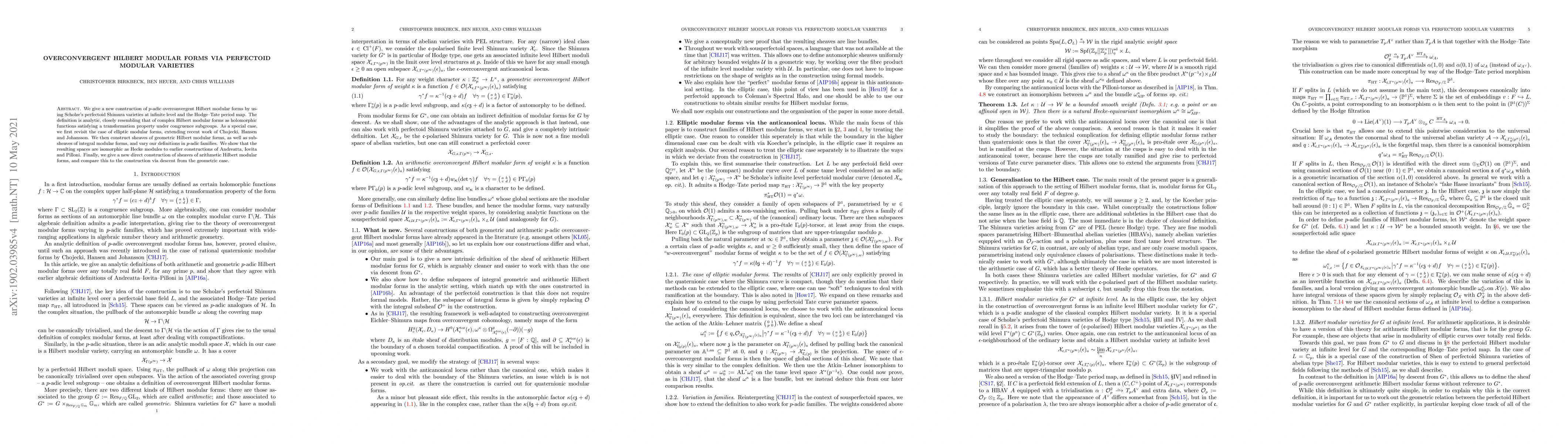 The paper introduces a novel analytic construction of $p$-adic overconvergent Hilbert modular forms via perfectoid Shimura varieties, linking complex and $p$-adic methods in modular form theory.