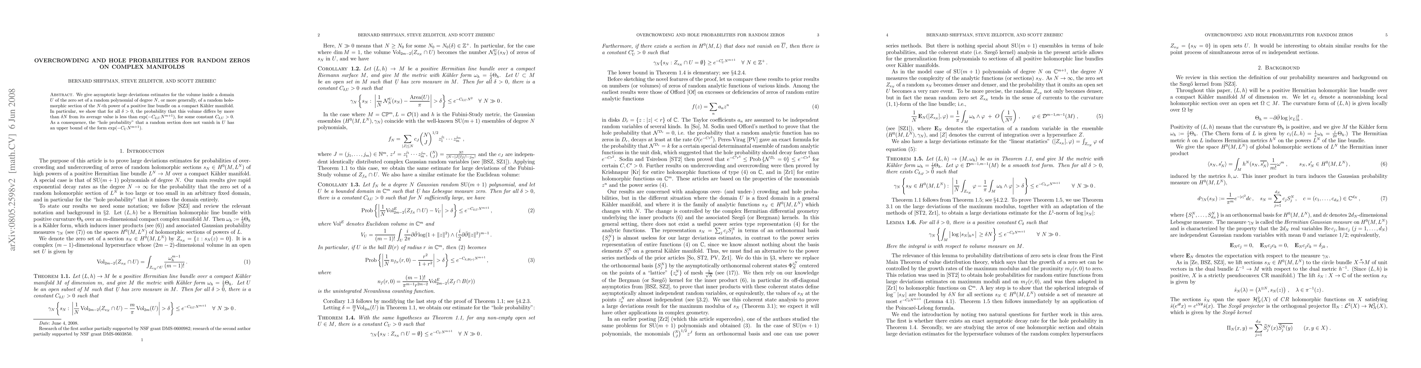 This research paper establishes bounds for the probability of non-vanishing sections on complex manifolds, showing that the volume inside a domain does not deviate significantly from its average value.