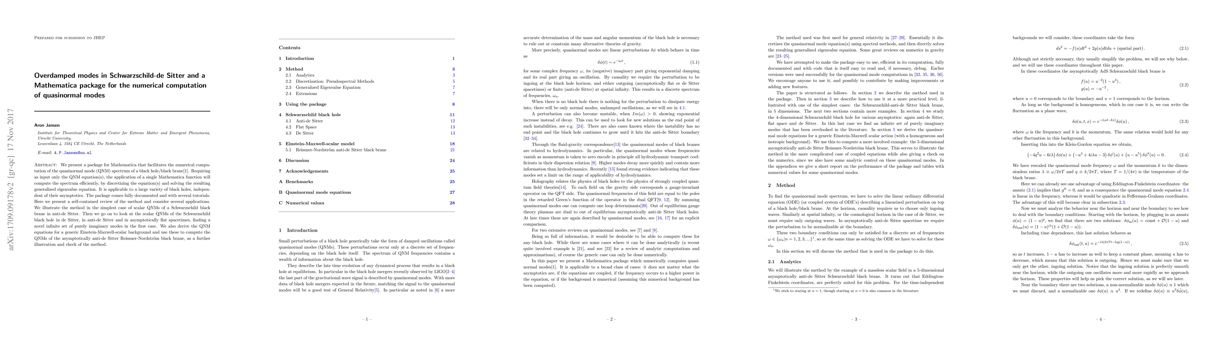This paper introduces a Mathematica package for computing the quasinormal mode spectrum of black holes and black branes, applicable to various spacetimes. It demonstrates the method with scalar QNMs for Schwarzschild black holes in different spacetimes, discovering novel purely imaginary modes in the anti-de Sitter case.