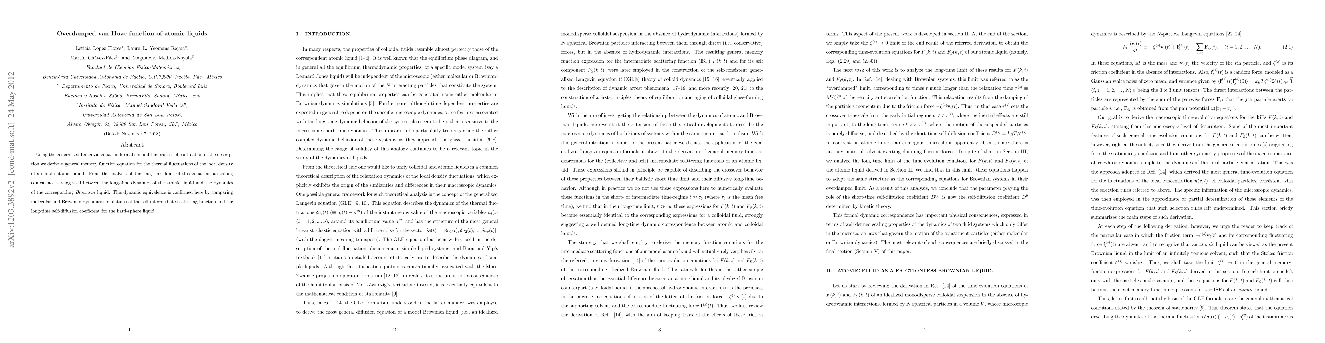 This paper derives a memory function equation for thermal fluctuations in simple atomic liquids using generalized Langevin dynamics, revealing a dynamic equivalence between atomic and Brownian liquids through simulations of their self-intermediate scattering function and long-time self-diffusion.