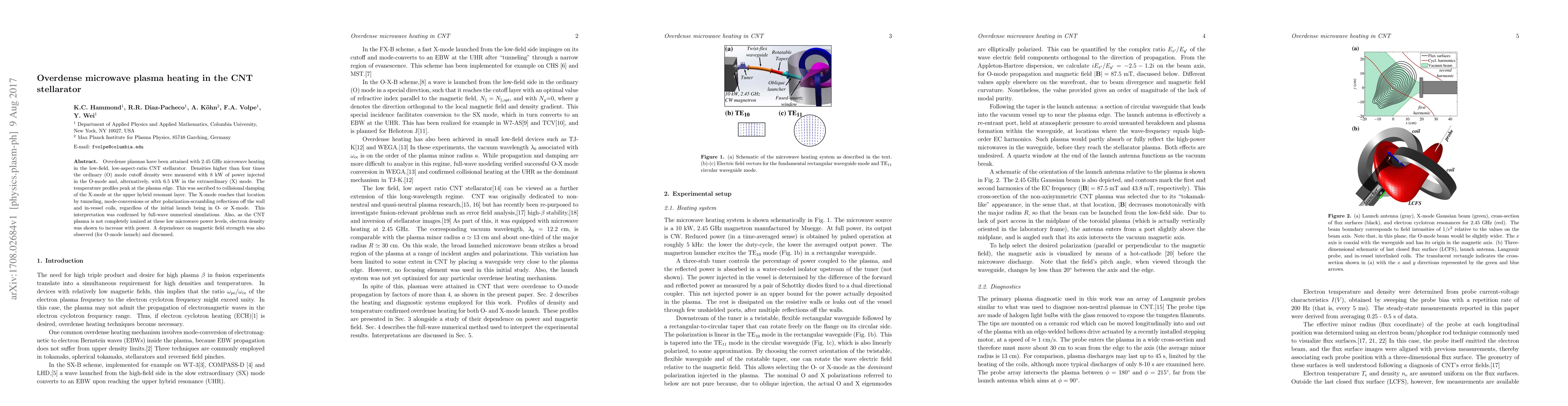Researchers successfully created overdense microwave plasmas in a CNT stellarator using 2.45 GHz microwave heating, achieving densities over four times the ordinary mode cutoff density.