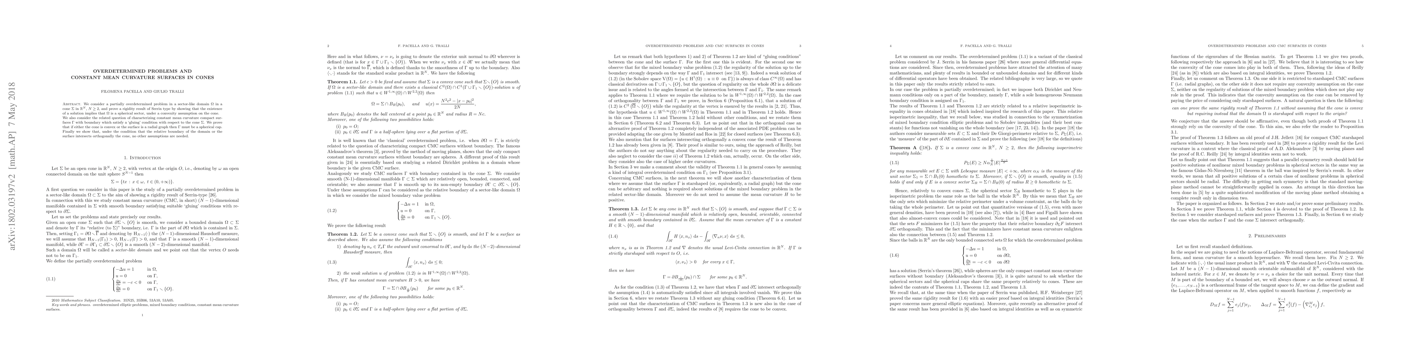 This paper proves a rigidity result for overdetermined problems in cone sectors, showing that solutions imply the sector is spherical under convexity. It also characterizes constant mean curvature surfaces in cones, proving that they are spherical caps if the cone is convex or if the surface is a radial graph.