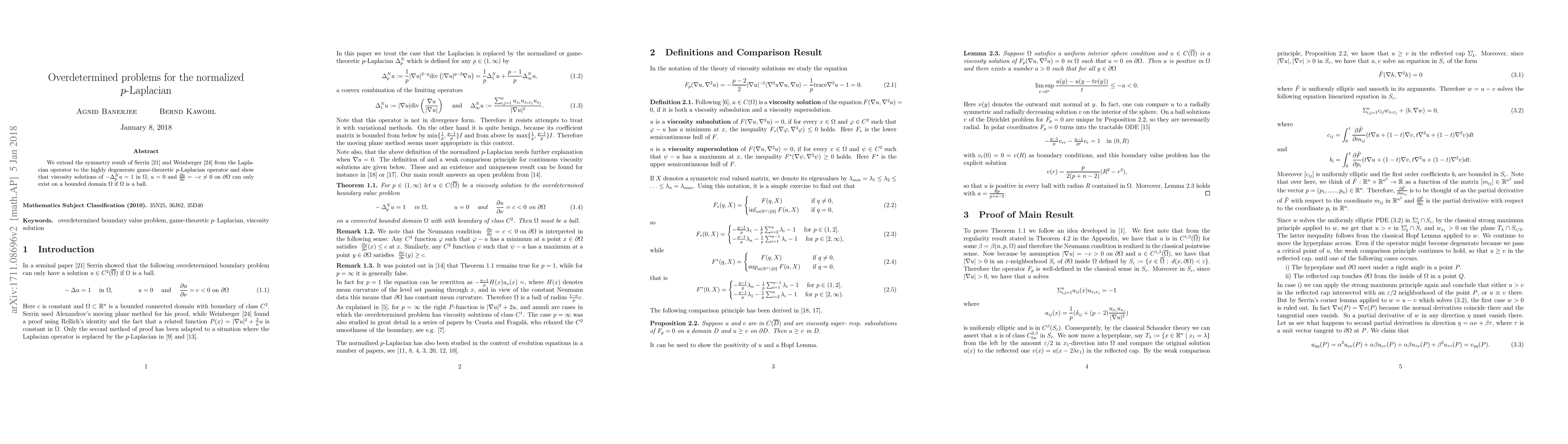 We extend the symmetry result of Serrin and Weinberger from the Laplacian operator to the highly degenerate game-theoretic $p$-Laplacian operator and show that viscosity solutions of $-\Delta_p^Nu=1$ in $\Omega$, $u=0$ and $\tfrac{\partial u}{\partial\nu}=-c\neq 0$ on $\partial\Omega$ can only exist on a bounded domain $\Omega$ if $\Omega$ is a ball.