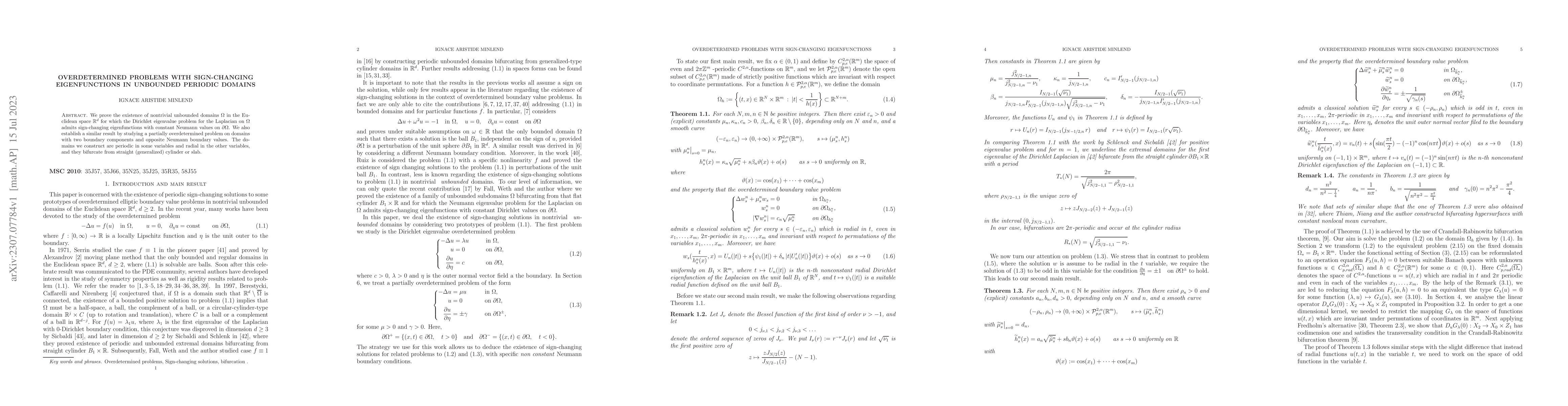 This paper proves the existence of unbounded periodic domains where the Dirichlet eigenvalue problem for the Laplacian has sign-changing eigenfunctions with constant Neumann boundary values. It also explores a partially overdetermined problem on domains with two boundary components and opposite Neumann values, showing similar results.