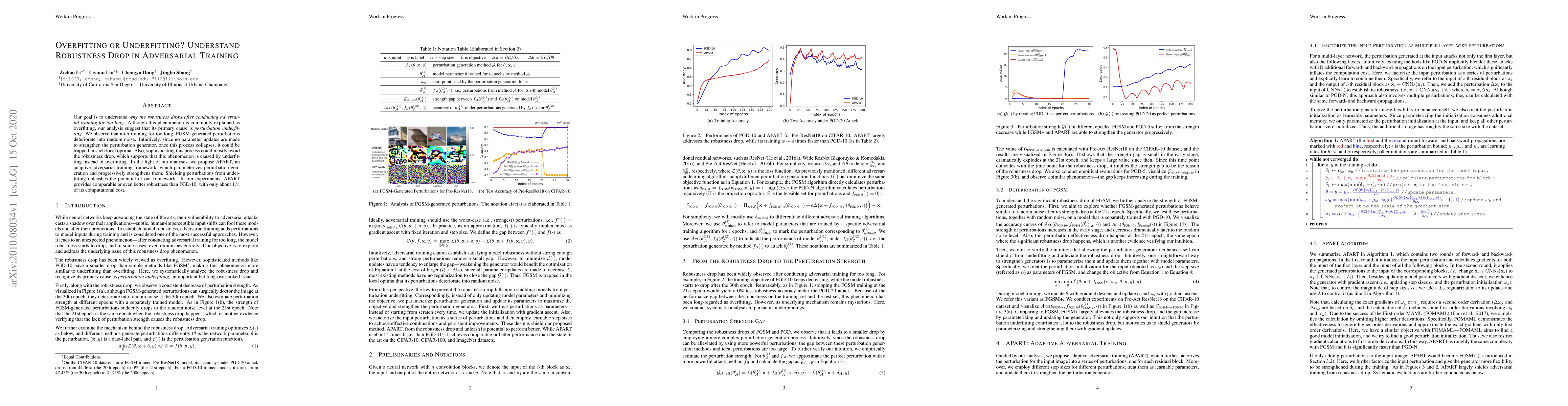 This paper investigates the robustness drop in adversarial training, attributing it primarily to perturbation underfitting rather than overfitting. The authors propose APART, an adaptive adversarial training framework that strengthens perturbations progressively, achieving comparable or superior robustness with significantly lower computational cost.