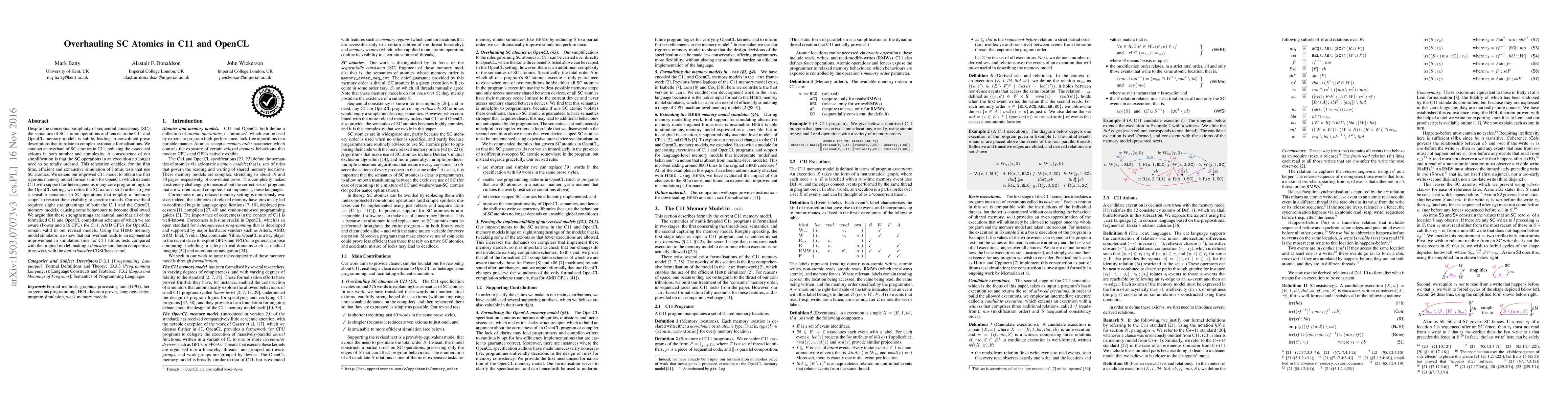 This paper simplifies the semantics of sequential consistency atomics in C11 and OpenCL, reducing the complexity of axiomatic formalizations and enabling more efficient simulation of litmus tests. The authors extend their improvements to provide the first rigorous formalization for OpenCL, refining SC operations to accommodate memory scopes.