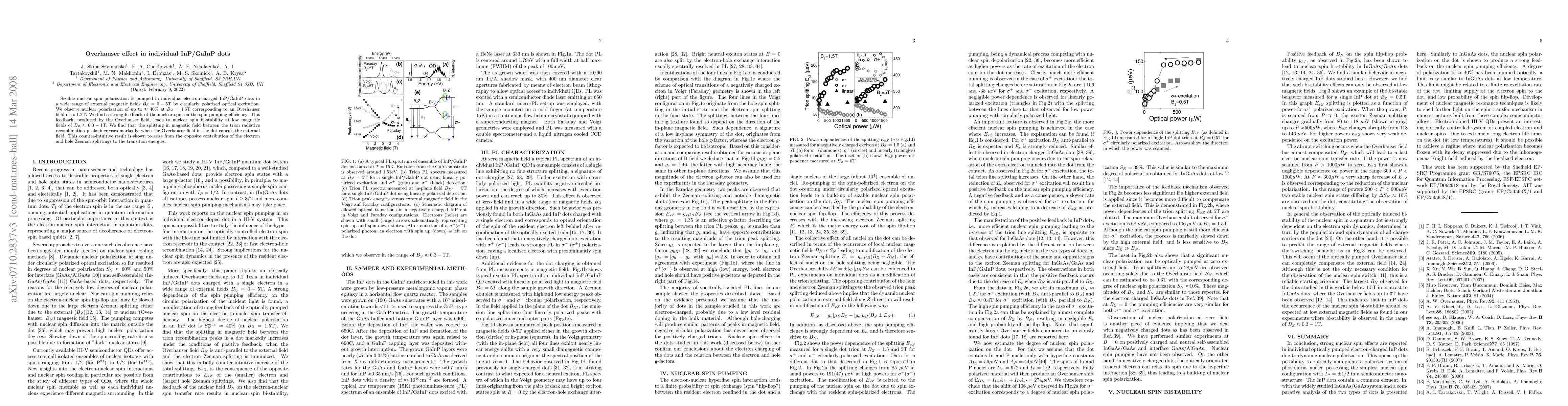 This study demonstrates significant nuclear spin polarization in individual InP/GaInP quantum dots via circularly polarized optical excitation, achieving up to 40% polarization at 1.5T. The Overhauser field feedback enhances spin pumping efficiency and induces nuclear spin bi-stability at low magnetic fields, while paradoxically increasing exciton Zeeman energy when the Overhauser field cancels the external field.