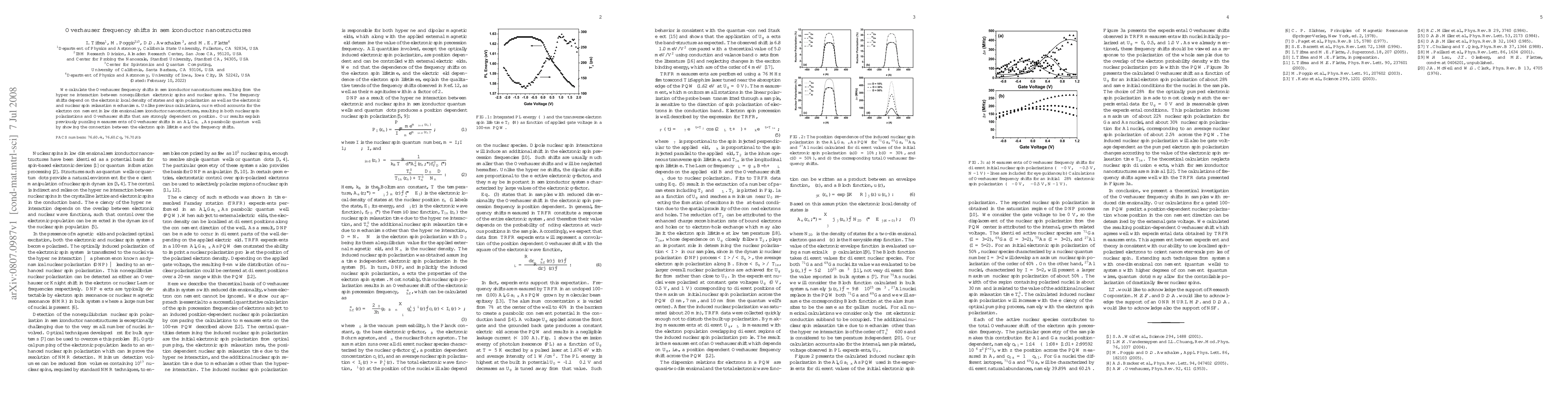 This study calculates Overhauser frequency shifts in semiconductor nanostructures due to hyperfine interactions between electronic and nuclear spins, emphasizing the effects of electron confinement. The results provide new insights into previously unexplained measurements in Al$_x$Ga$_{1-x}$As quantum wells, linking electron spin lifetime to frequency shifts.