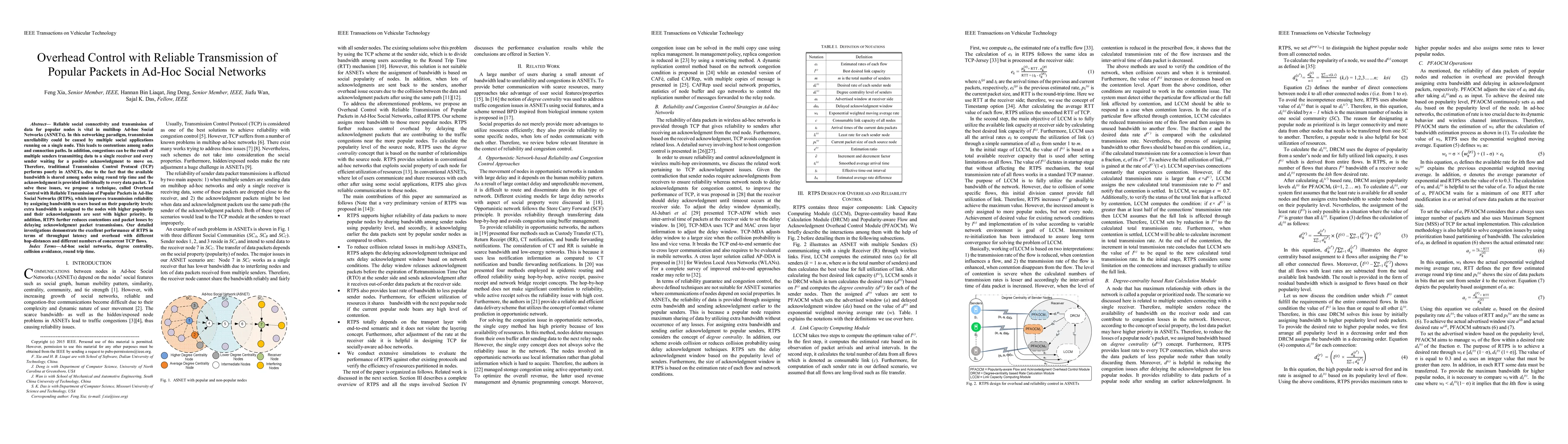 Reliable social connectivity and transmission of data for popular nodes is vital in multihop Ad-hoc Social Networks (ASNETs). In this networking paradigm, transmission unreliability could be caused by multiple social applications running on a single node. This leads to contentions among nodes and connection paths. In addition, congestions can be the result of multiple senders transmitting data to a single receiver and every sender waiting for a positive acknowledgment to move on. Therefore, traditional Transmission Control Protocol (TCP) performs poorly in ASNETs, due to the fact that the available bandwidth is shared among nodes using round trip time and the acknowledgment is provided individually to every data packet. To solve these issues, we propose a technique, called Overhead Control with Reliable Transmission of Popular Packets in Ad-Hoc Social Networks (RTPS), which improves transmission reliability by assigning bandwidth to users based on their popularity levels: extra bandwidth is assigned to the nodes with higher popularity and their acknowledgments are sent with higher priority. In addition, RTPS further reduces contentions and packet losses by delaying acknowledgment packet transmissions. Our detailed investigations demonstrate the excellent performance of RTPS in terms of throughput latency and overhead with different hop-distances and different numbers of concurrent TCP flows.