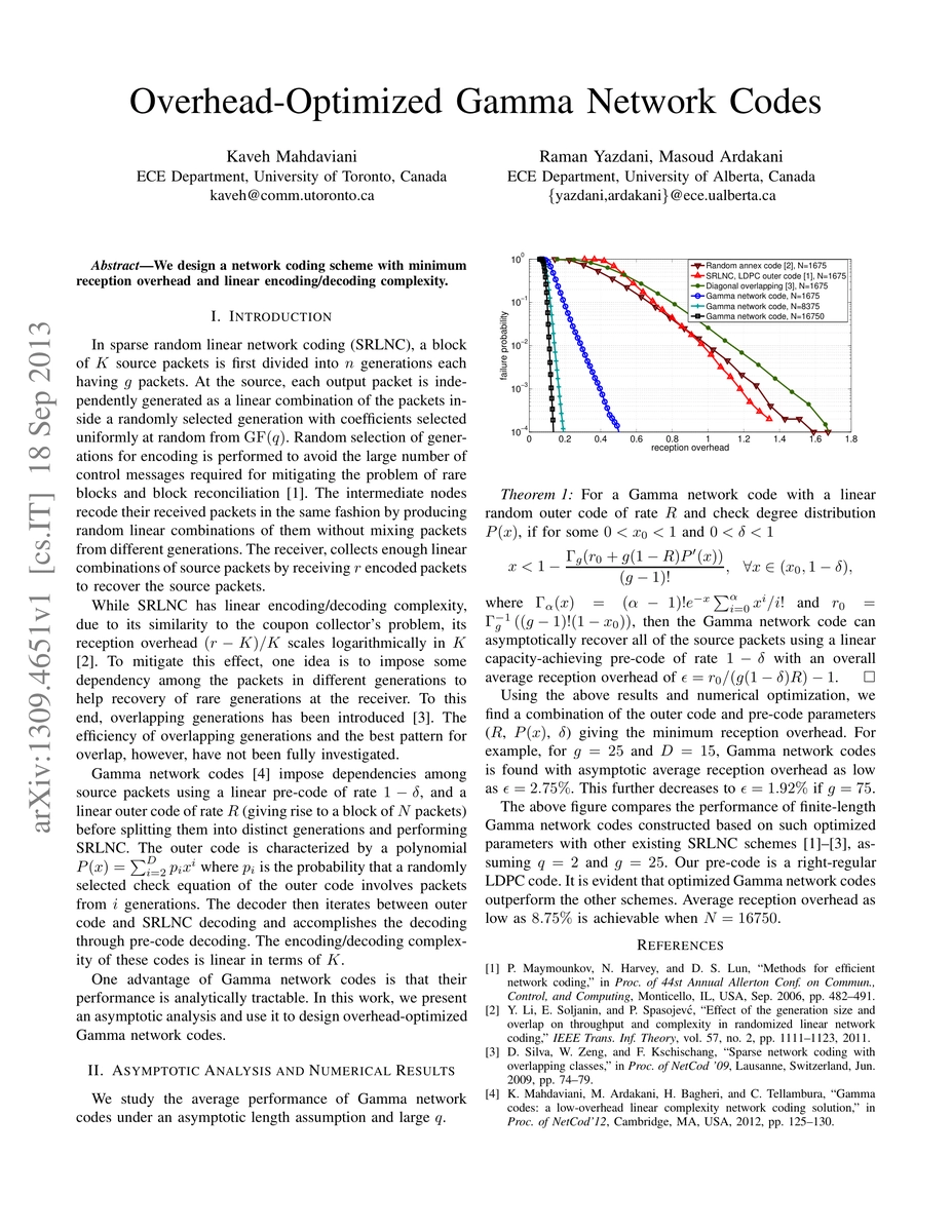 We design a network coding scheme with minimum reception overhead and linear encoding/decoding complexity.