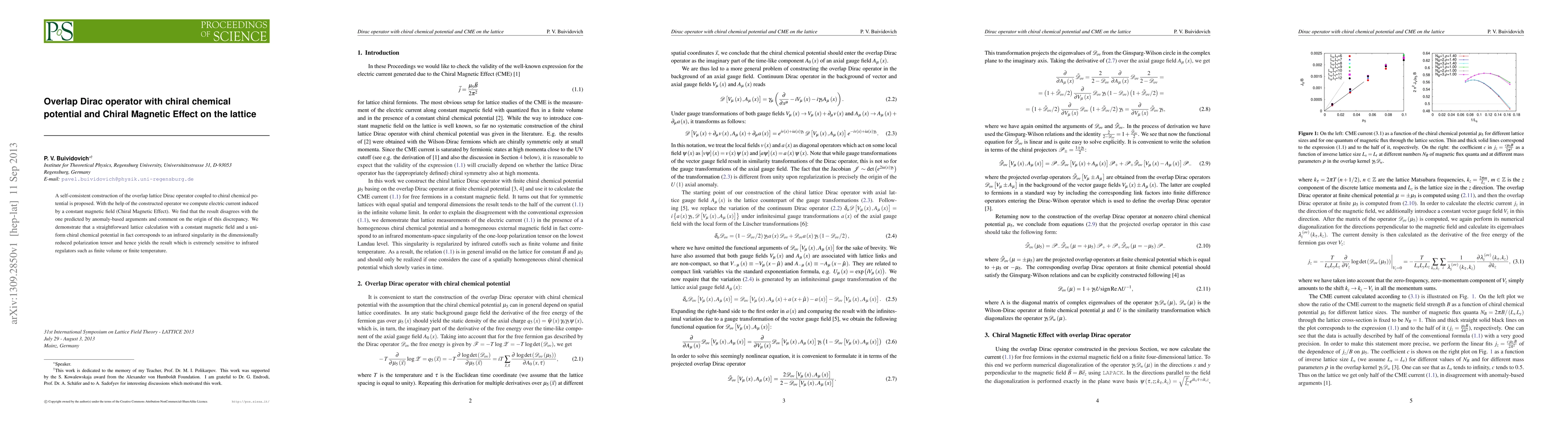 The paper proposes a self-consistent overlap lattice Dirac operator with a chiral chemical potential and investigates the Chiral Magnetic Effect. It finds a discrepancy between the computed electric current and anomaly-based predictions, attributing this to infrared singularities in the dimensionally reduced polarization tensor.