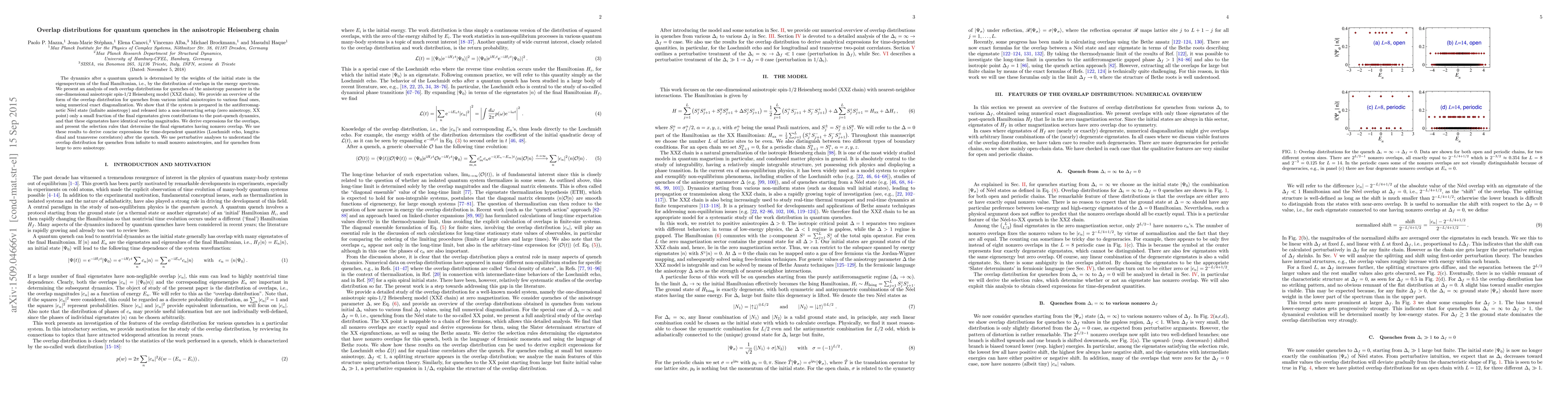 This paper analyzes overlap distributions in the anisotropic Heisenberg chain following quantum quenches, revealing that only a small fraction of final eigenstates contribute significantly when transitioning from infinite anisotropy to zero, with identical overlap magnitudes. It derives expressions for these overlaps and provides concise expressions for post-quench dynamics.