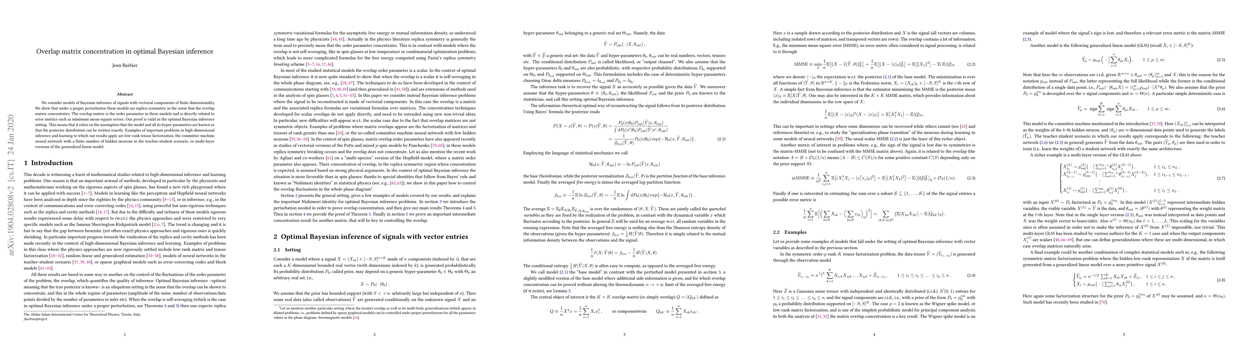 We consider models of Bayesian inference of signals with vectorial components of finite dimensionality. We show that, under a proper perturbation, these models are replica symmetric in the sense that the overlap matrix concentrates. The overlap matrix is the order parameter in these models and is directly related to error metrics such as minimum mean-square errors. Our proof is valid in the optimal Bayesian inference setting. This means that it relies on the assumption that the model and all its hyper-parameters are known so that the posterior distribution can be written exactly. Examples of important problems in high-dimensional inference and learning to which our results apply are low-rank tensor factorization, the committee machine neural network with a finite number of hidden neurons in the teacher-student scenario, or multi-layer versions of the generalized linear model.