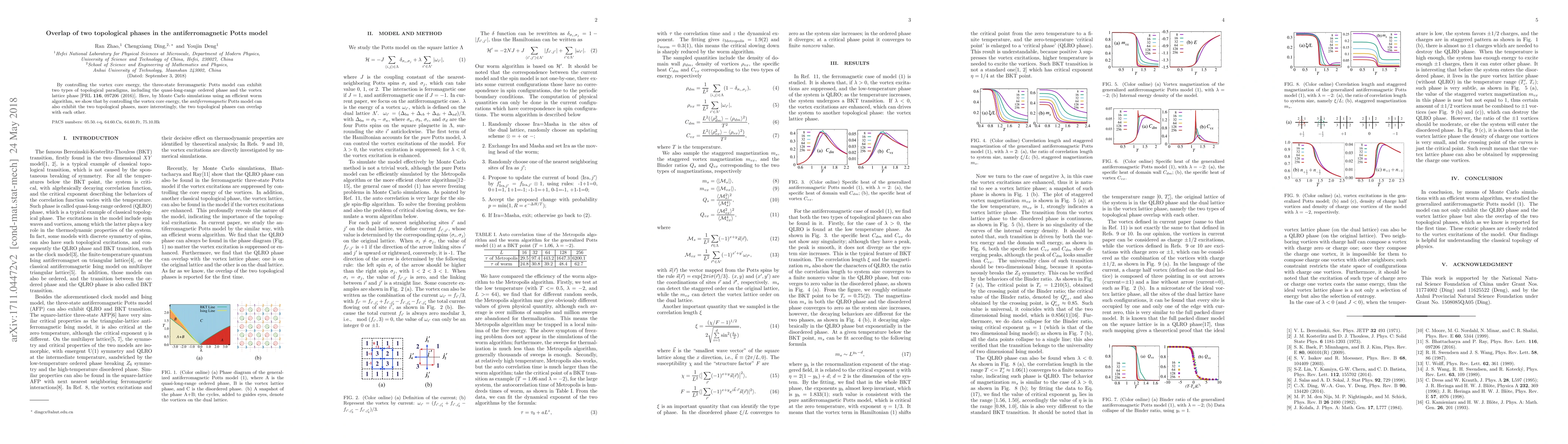 This paper demonstrates through Monte Carlo simulations that the antiferromagnetic Potts model can display two topological phases—quasi-long-range ordered and vortex lattice phases—and notably, these phases can overlap, revealing complex interactions in the model.