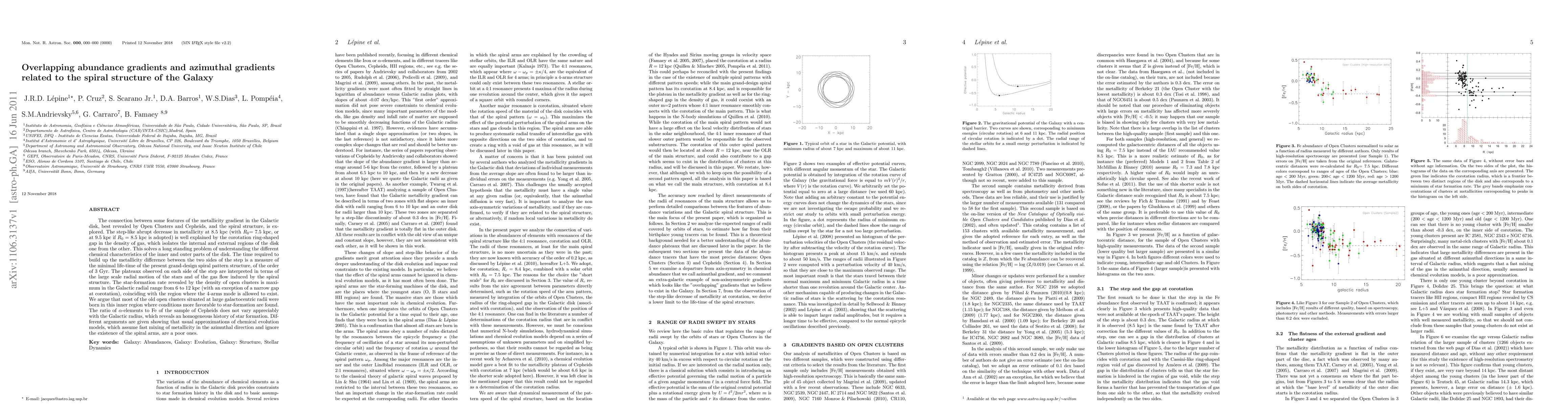 The connection between some features of the metallicity gradient in the Galactic disk, best revealed by Open Clusters and Cepheids, and the spiral structure, is explored. The step-like abrupt decrease in metallicity at 8.5 kpc (with R_0= 7.5 kpc, or at 9.5 kpc if R_0 = 8.5 kpc is adopted) is well explained by the corotation ring-shaped gap in the density of gas, which isolates the internal and external regions of the disk one from the other. This solves a long standing problem of understanding the different chemical characteristics of the inner and outer parts of the disk. The time required to build up the metallicity difference between the two sides of the step is a measure of the minimal life-time of the present grand-design spiral pattern structure, of the order of 3 Gyr. The plateaux observed on each side of the step are interpreted in terms of the large scale radial motion of the stars and of the gas flow induced by the spiral structure. The star-formation rate revealed by the density of open clusters is maximum in the Galactic radial range from 6 to 12 kpc (with an exception of a narrow gap at corotation), coinciding with the region where the 4-arms mode is allowed to exist. We argue that most of the old open clusters situated at large galactocentric radii were born in this inner region where conditions more favorable to star-formation are found. The ratio of $\alpha$-elements to Fe of the sample of Cepheids does not vary appreciably with the Galactic radius, which reveals an homogeneous history of star formation. Different arguments are given showing that usual approximations of chemical evolution models, which assume fast mixing of metallicity in the azimuthal direction and ignore the existence of the spiral arms, are a poor ones.