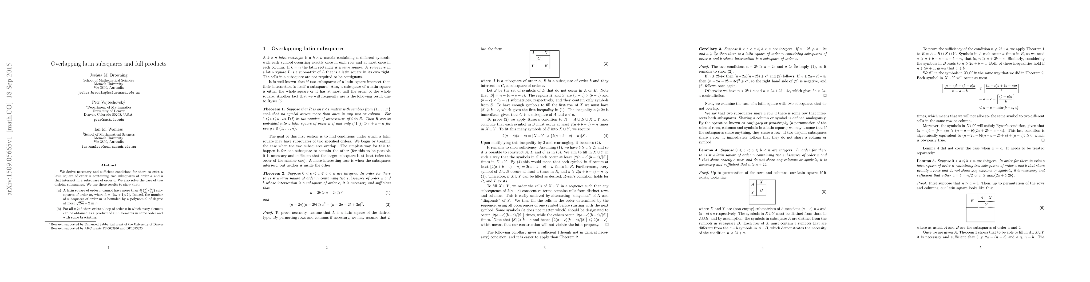 Researchers found a way to estimate the maximum number of subsquares in a latin square and proved that some loop orders have the ability to generate every element as a product of its elements in some order.