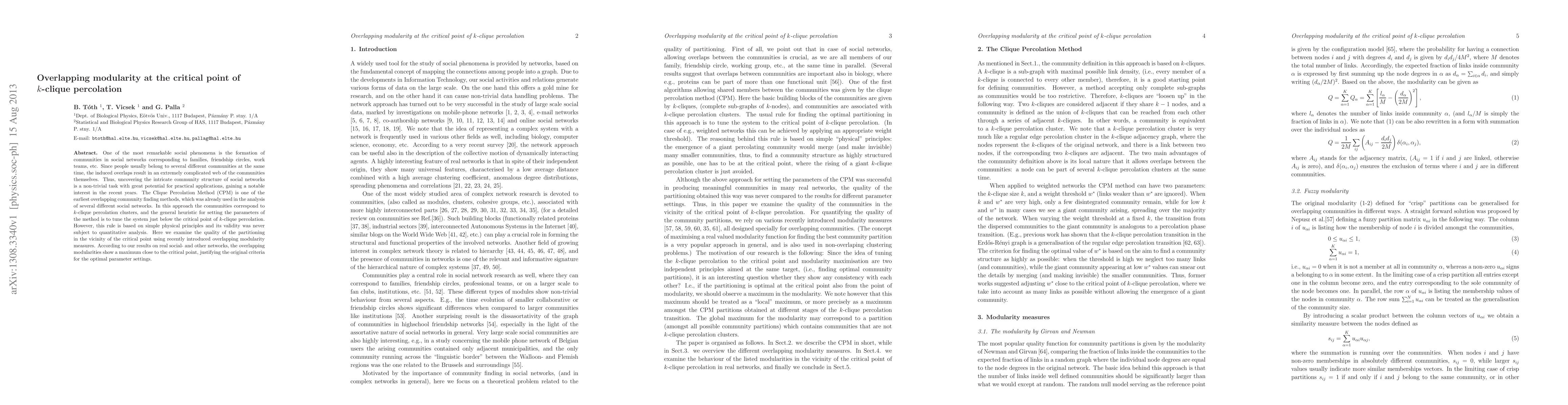 This paper investigates the effectiveness of the Clique Percolation Method (CPM) for identifying overlapping communities in social networks, focusing on parameter settings near the critical point of k-clique percolation. The study finds that overlapping modularity measures peak near this critical point, validating the heuristic approach for optimal parameter selection.