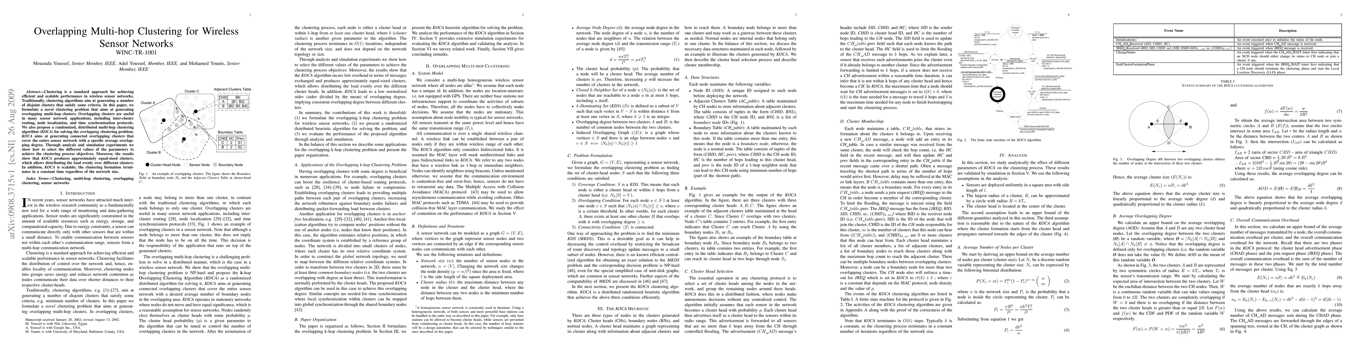This paper proposes a novel randomized, distributed algorithm (KOCA) for generating overlapping multi-hop clusters in wireless sensor networks, aiming to achieve efficient load distribution and scalability. The KOCA algorithm creates connected clusters with specific overlapping degrees, demonstrating scalability and balanced cluster sizes through analysis and simulations.
