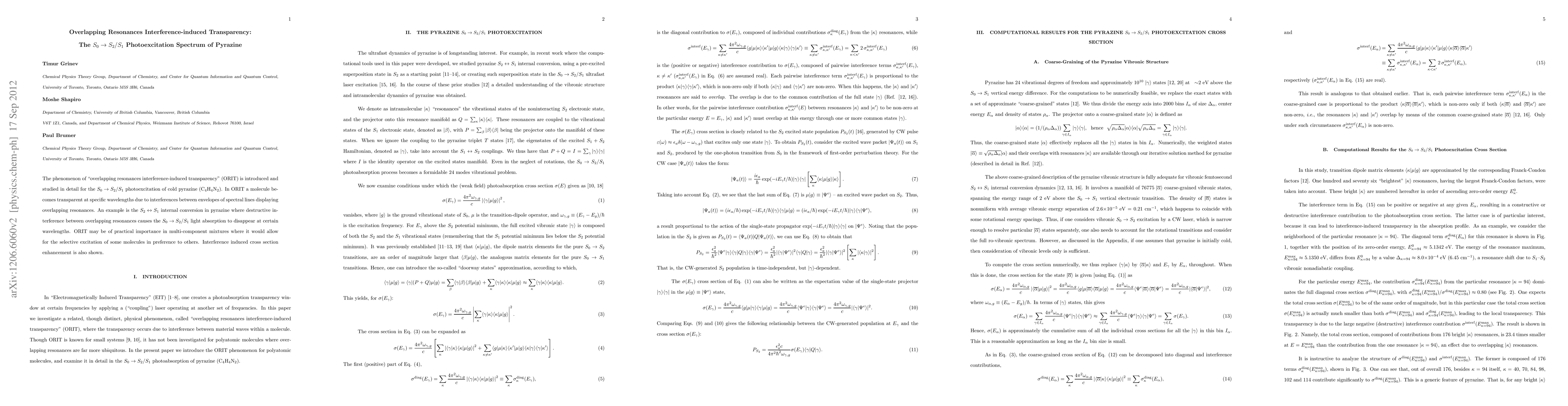 The phenomenon of "overlapping resonances interference-induced transparency" (ORIT) is introduced and studied in detail for the $S_0 \to S_2/S_1$ photoexcitation of cold pyrazine (C$_4$H$_4$N$_2$). In ORIT a molecule becomes transparent at specific wavelengths due to interferences between envelopes of spectral lines displaying overlapping resonances. An example is the $S_2\leftrightarrow S_1$ internal conversion in pyrazine where destructive interference between overlapping resonances causes the $S_0 \to S_2/S_1$ light absorption to disappear at certain wavelengths. ORIT may be of practical importance in multi-component mixtures where it would allow for the selective excitation of some molecules in preference to others. Interference induced cross section enhancement is also shown.