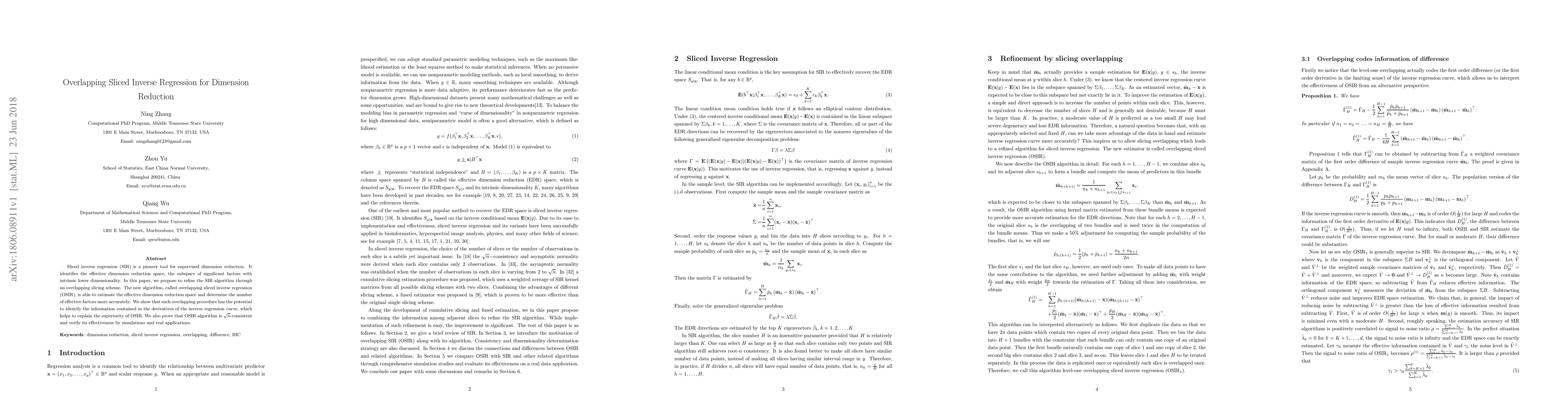 Sliced inverse regression (SIR) is a pioneer tool for supervised dimension reduction. It identifies the effective dimension reduction space, the subspace of significant factors with intrinsic lower dimensionality. In this paper, we propose to refine the SIR algorithm through an overlapping slicing scheme. The new algorithm, called overlapping sliced inverse regression (OSIR), is able to estimate the effective dimension reduction space and determine the number of effective factors more accurately. We show that such overlapping procedure has the potential to identify the information contained in the derivatives of the inverse regression curve, which helps to explain the superiority of OSIR. We also prove that OSIR algorithm is $\sqrt n $-consistent and verify its effectiveness by simulations and real applications.