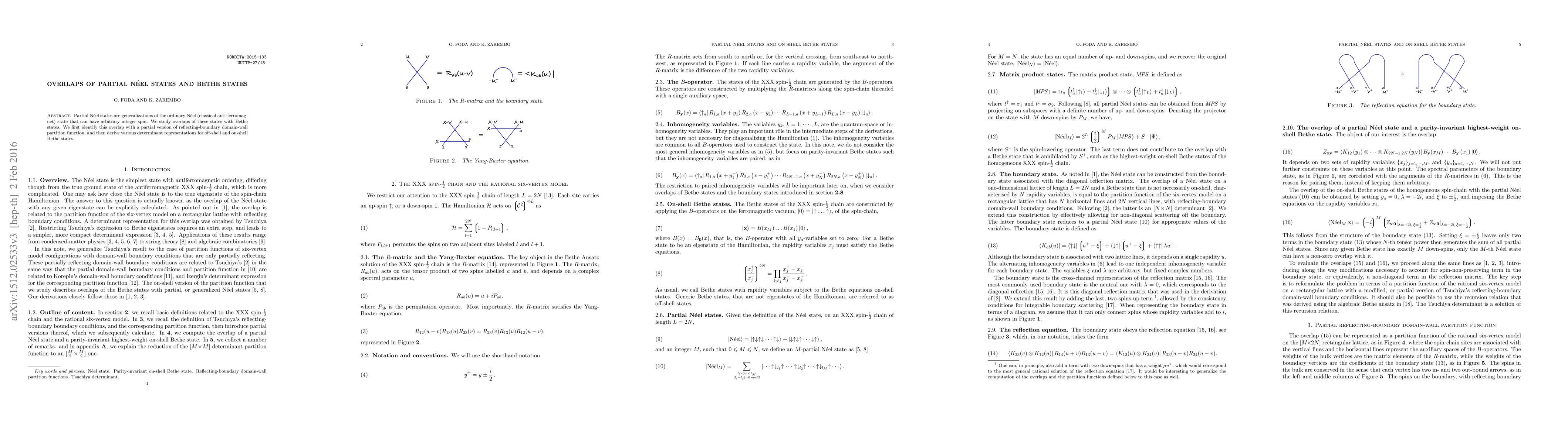 Partial Neel states are generalizations of the ordinary Neel (classical anti-ferromagnet) state that can have arbitrary integer spin. We study overlaps of these states with Bethe states. We first identify this overlap with a partial version of reflecting-boundary domain-wall partition function, and then derive various determinant representations for off-shell and on-shell Bethe states.