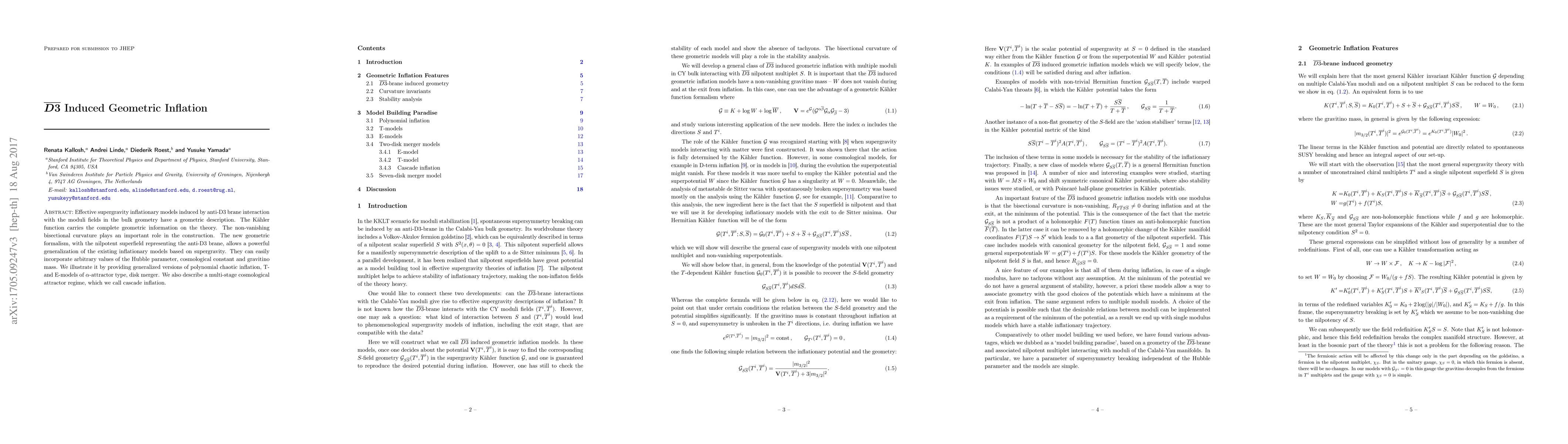 Researchers introduce a new geometric inflation model based on anti-D3 brane interaction with moduli fields, allowing for flexible incorporation of parameters like Hubble parameter and cosmological constant.