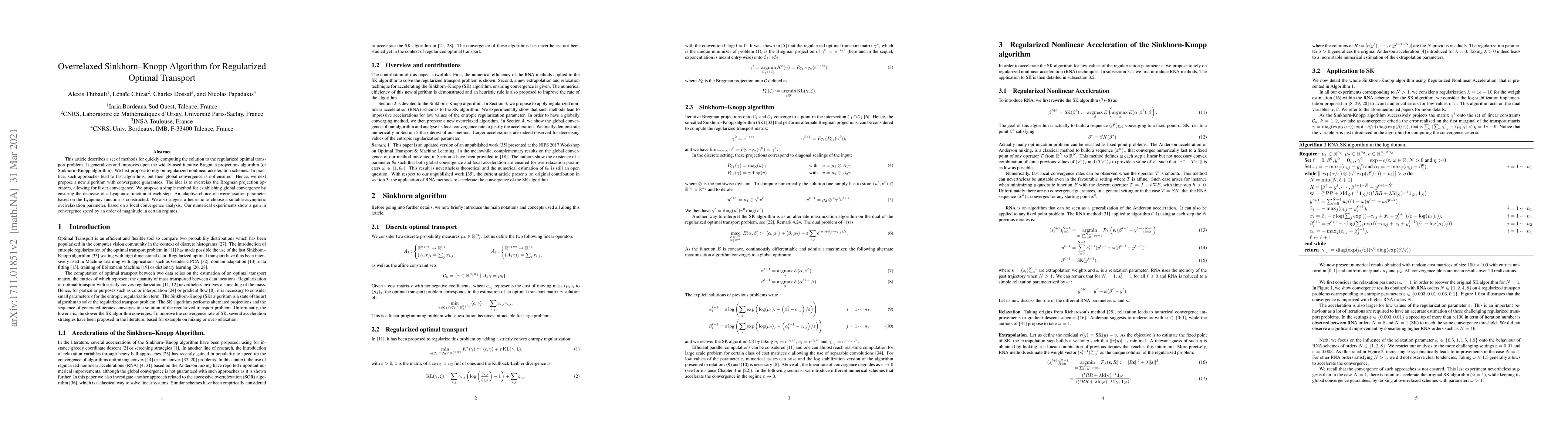 This article describes a set of methods for quickly computing the solution to the regularized optimal transport problem. It generalizes and improves upon the widely-used iterative Bregman projections algorithm (or Sinkhorn--Knopp algorithm). We first propose to rely on regularized nonlinear acceleration schemes. In practice, such approaches lead to fast algorithms, but their global convergence is not ensured. Hence, we next propose a new algorithm with convergence guarantees. The idea is to overrelax the Bregman projection operators, allowing for faster convergence. We propose a simple method for establishing global convergence by ensuring the decrease of a Lyapunov function at each step. An adaptive choice of overrelaxation parameter based on the Lyapunov function is constructed. We also suggest a heuristic to choose a suitable asymptotic overrelaxation parameter, based on a local convergence analysis. Our numerical experiments show a gain in convergence speed by an order of magnitude in certain regimes.