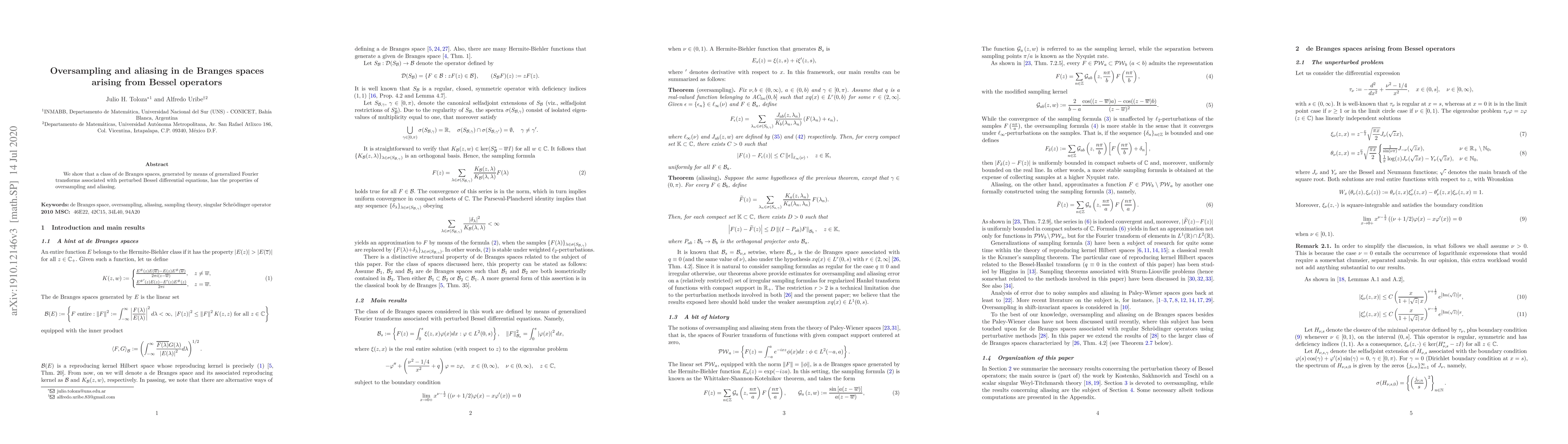 Summary: This paper demonstrates that de Branges spaces derived from perturbed Bessel differential equations exhibit oversampling and aliasing properties through generalized Fourier transforms. The findings highlight the mathematical behavior of these spaces under transformation.