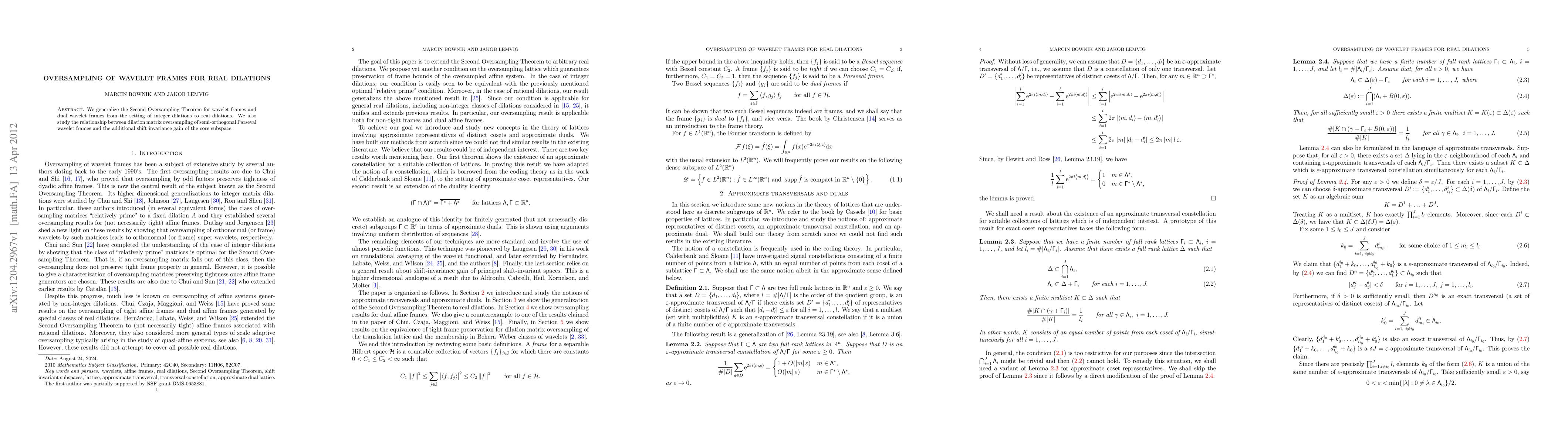 This paper generalizes the Second Oversampling Theorem for wavelet frames to real dilations, exploring the connection between dilation matrix oversampling in semi-orthogonal Parseval wavelet frames and the resulting shift invariance benefits for the core subspace.