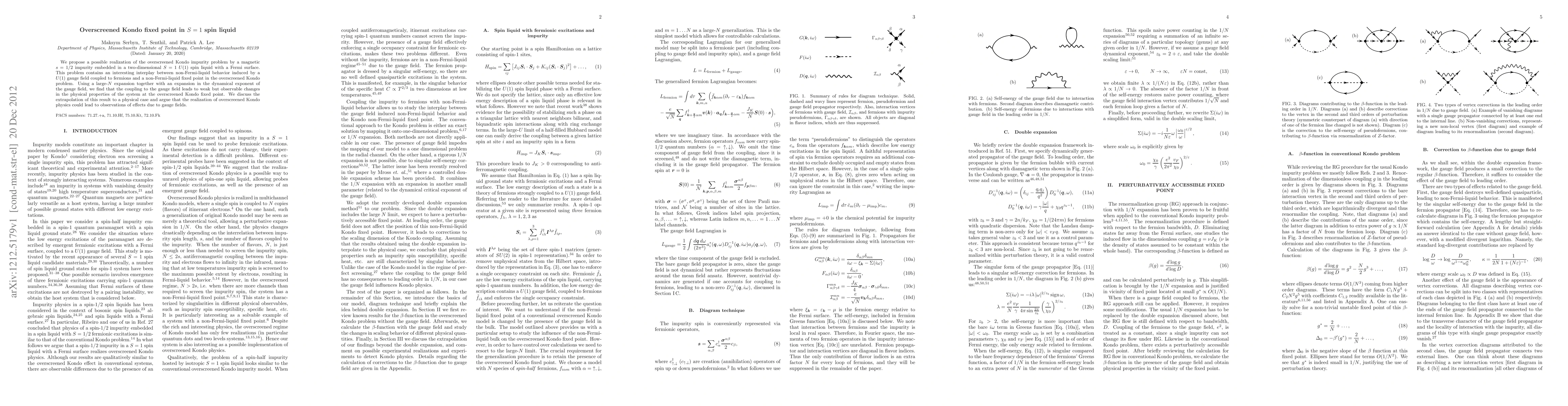 We propose a possible realization of the overscreened Kondo impurity problem by a magnetic s=1/2 impurity embedded in a two-dimensional S=1 U(1) spin liquid with a Fermi surface. This problem contains an interesting interplay between non-Fermi-liquid behavior induced by a U(1) gauge field coupled to fermions and a non-Fermi-liquid fixed point in the overscreened Kondo problem. Using a large-N expansion together with an expansion in the dynamical exponent of the gauge field, we find that the coupling to the gauge field leads to weak but observable changes in the physical properties of the system at the overscreened Kondo fixed point. We discuss the extrapolation of this result to a physical case and argue that the realization of overscreened Kondo physics could lead to observations of effects due to gauge fields.