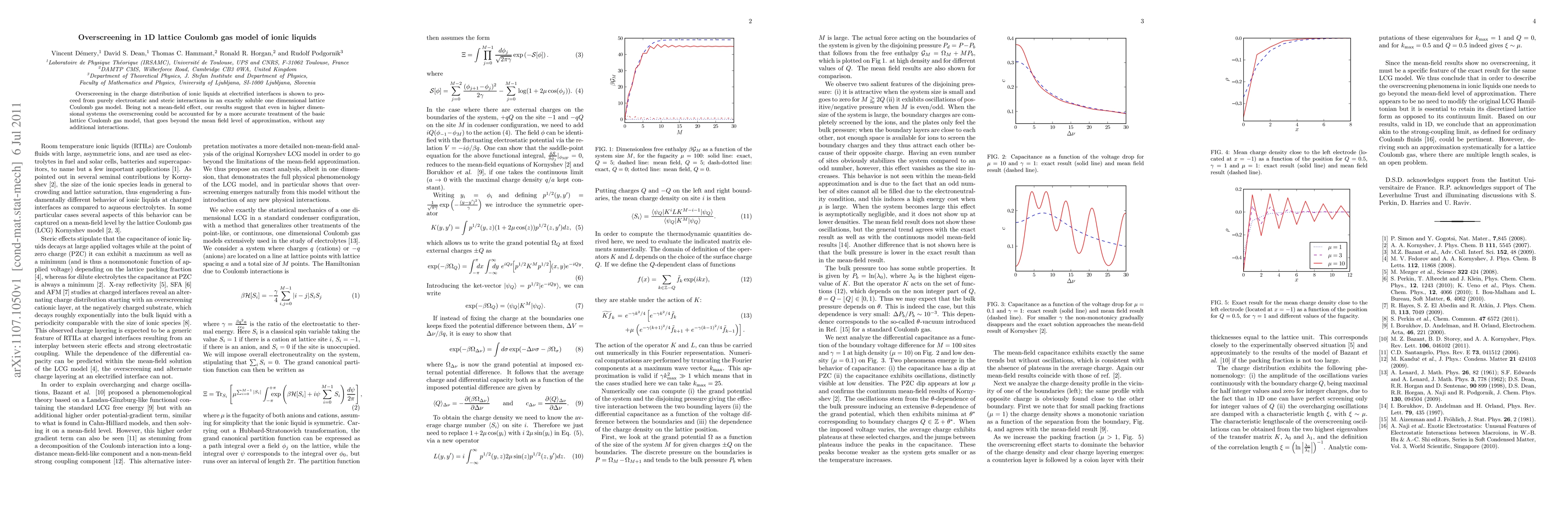 This paper demonstrates that overscreening in ionic liquids at electrified interfaces is driven by electrostatic and steric interactions in a 1D lattice Coulomb gas model. The findings suggest that overscreening can be accurately modeled without mean-field approximations, implying similar behavior in higher-dimensional systems.